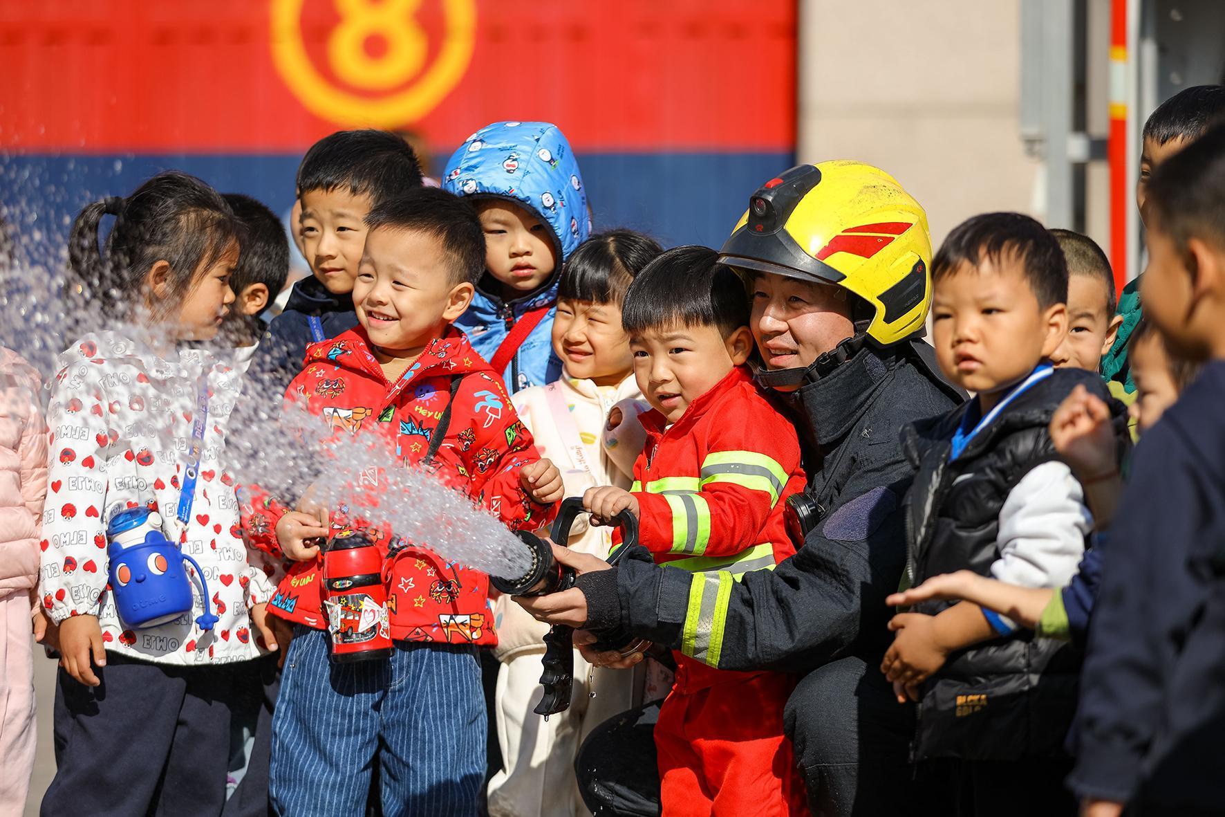 11月8日,山東省青島市李滄區(qū)消防救援大隊(duì)李村站開展“消防開放日”活動(dòng),邀請(qǐng)轄區(qū)幼兒園小朋友走進(jìn)消防營區(qū),通過學(xué)習(xí)消防安全知識(shí)、疏散逃生體驗(yàn)、消防裝備器材體驗(yàn)等活動(dòng),增長消防安全知識(shí),提高自身的消防安全意識(shí)和自防自救能力。