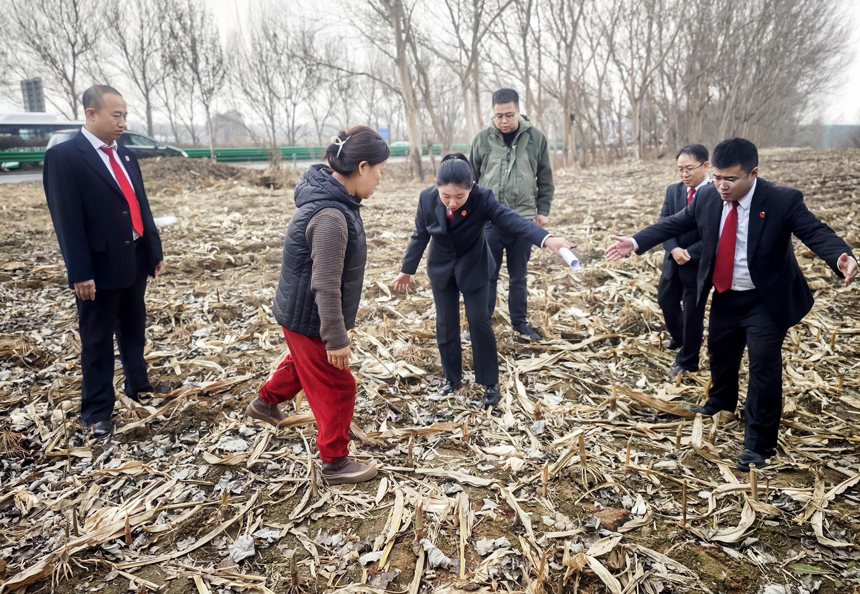 圖為11月11日,法官現(xiàn)場調(diào)解一起村民因土地發(fā)生糾紛。