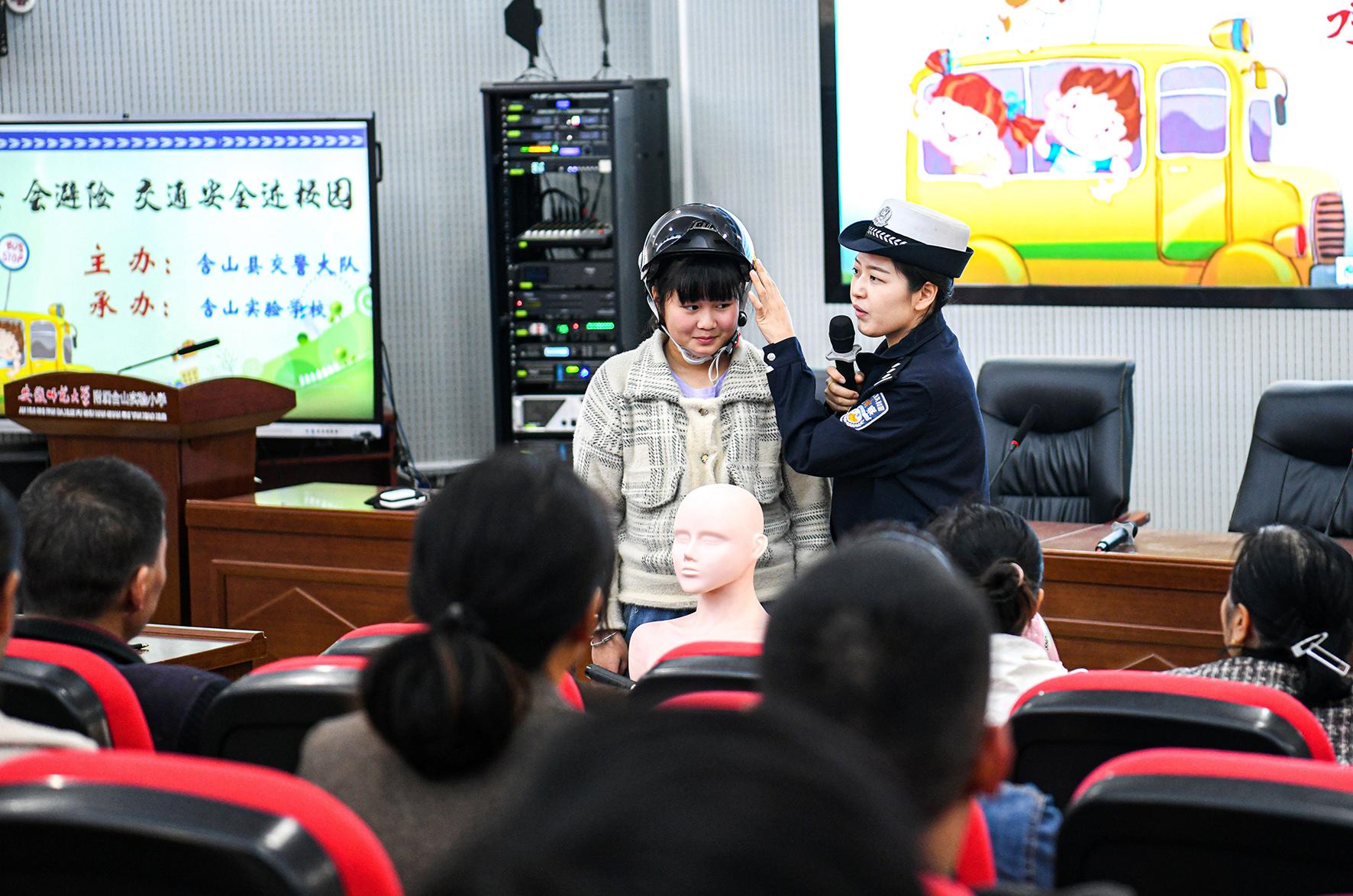 11月15日,安徽省馬鞍山市含山縣公安局交管大隊組織民警走進轄區(qū)校園,借助開家長會的有利時機開展交通安全宣傳教育活動,與學生、家長面對面話“安全”。