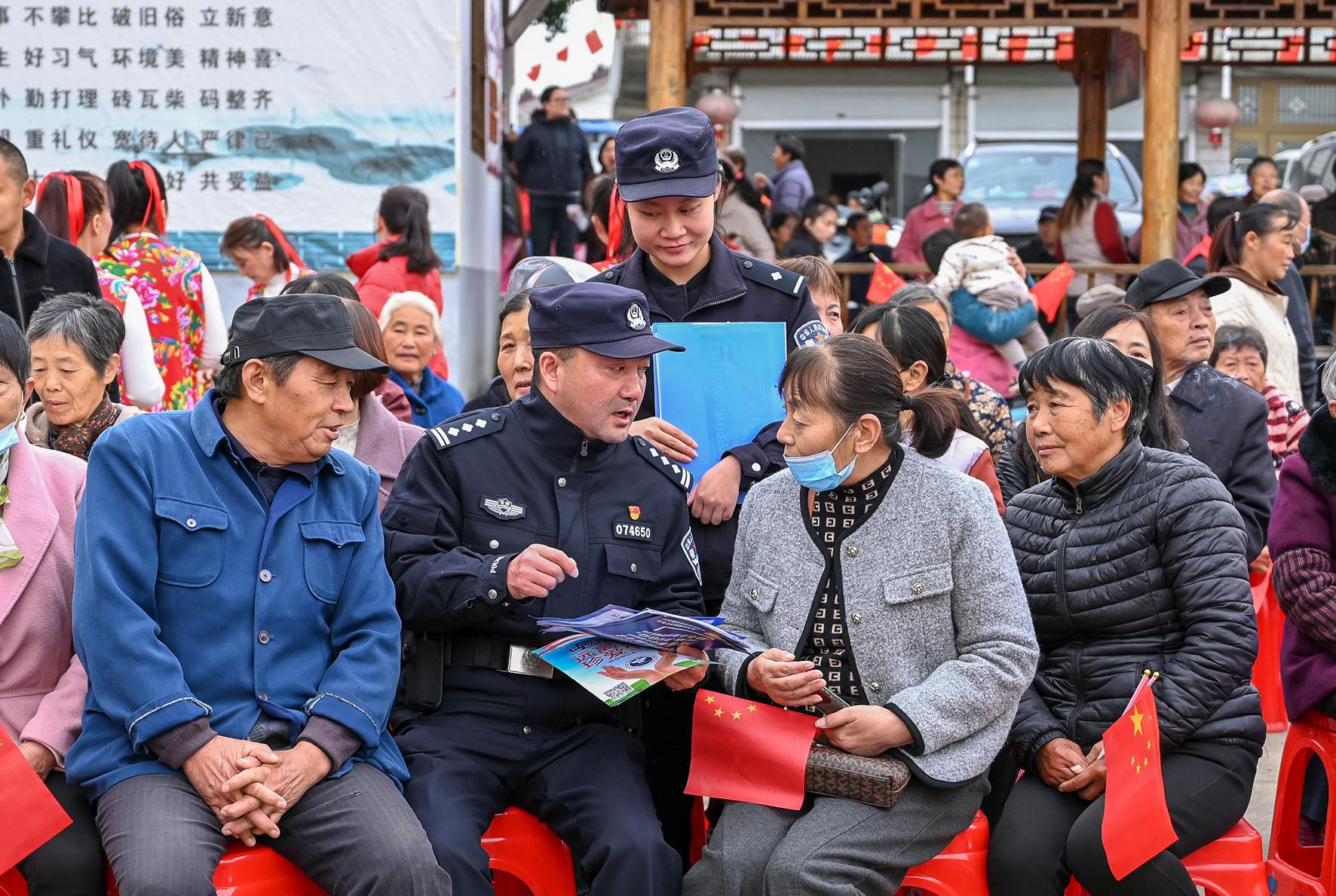 11月18日,在安徽省馬鞍山市和縣石楊鎮(zhèn)“安徽省2024四季村晚”現(xiàn)場(chǎng),石楊派出所民警正在向村民開(kāi)展普法宣傳,講解網(wǎng)絡(luò)詐騙、禁毒和冬季防盜知識(shí),讓村民在享受精神大餐的同時(shí),提升法治意識(shí)和自我保護(hù)能力。