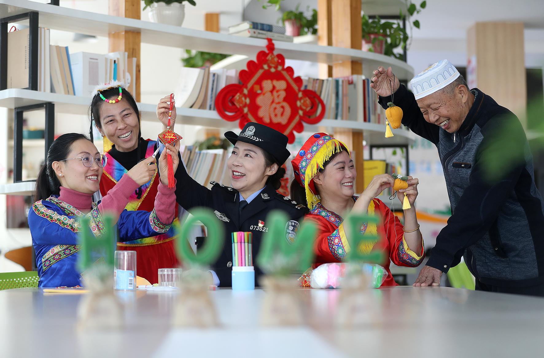 11月20日,湖北省荊門市公安局高新區(qū)·掇刀區(qū)分局掇刀石派出所民警在白石坡社區(qū),與轄區(qū)少數(shù)民族居民開展反詐禁毒“平安香囊”手工DIY活動(dòng)。