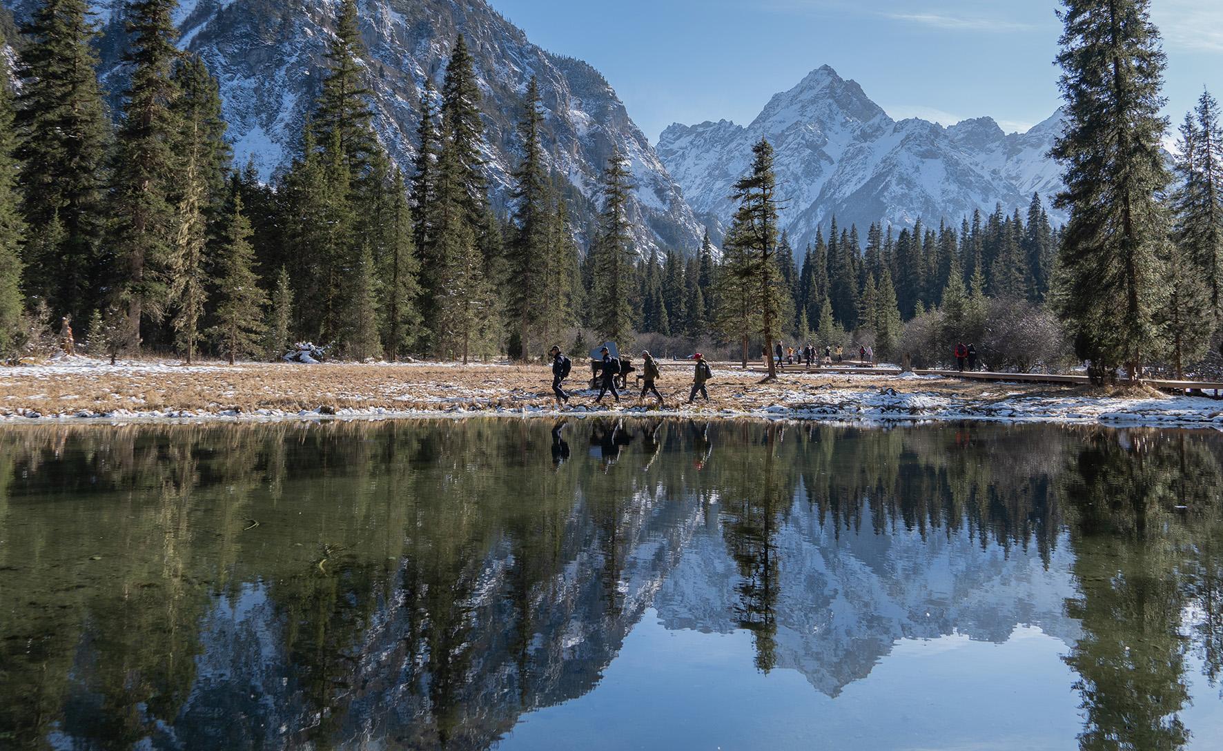 11月28日,雪后的王朗國家級自然保護區(qū)銀裝素裹,四川省平武縣公安局白馬派出所民警聯(lián)合護林員在平均海拔3200余米的大熊貓國家公園內進行巡邏,守護保護區(qū)安全。