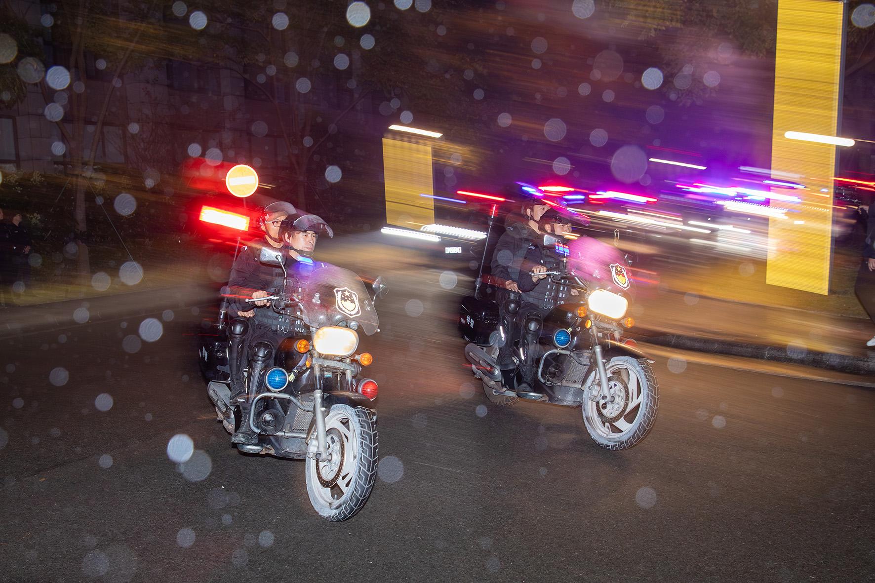 12月10日夜,浙江省臺(tái)州市公安局黃巖分局巡特警大隊(duì)隊(duì)員冒雨參加“冬季行動(dòng)”,分組在城區(qū)開(kāi)展摩托車(chē)和步行巡邏,并在入城道口設(shè)卡盤(pán)查可疑車(chē)輛,守護(hù)冬夜的平安。