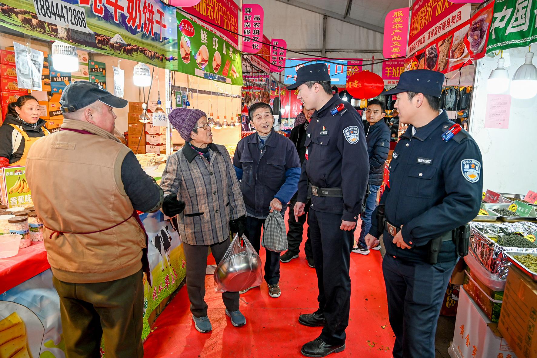 1月5日晚,安徽省馬鞍山市和縣公安局民警在新春購(gòu)物節(jié)活動(dòng)現(xiàn)場(chǎng)巡邏,保障現(xiàn)場(chǎng)安全有序。