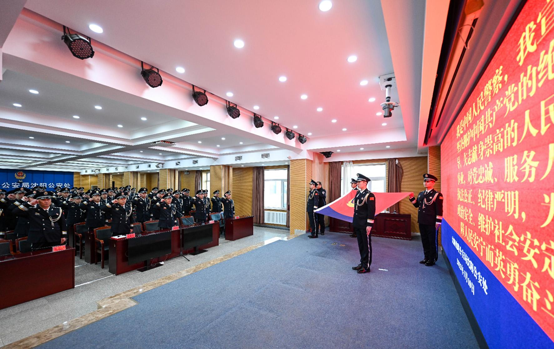 1月10日,沈陽鐵路公安局沈陽公安處舉行“公安心向黨 護航新征程”主題活動,慶祝第五個中國人民警察節(jié)。