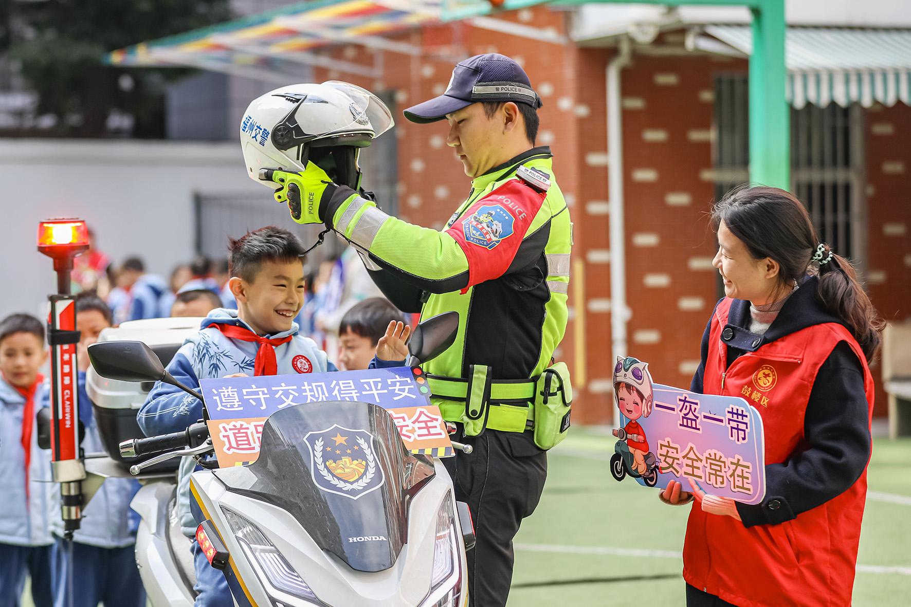 1月14日,福建省福州市公安局交警支隊(duì)鼓樓大隊(duì)民警、社區(qū)志愿者走進(jìn)斗南小學(xué),開展“交通安全進(jìn)校園 平安快樂(lè)度寒假”主題活動(dòng)。