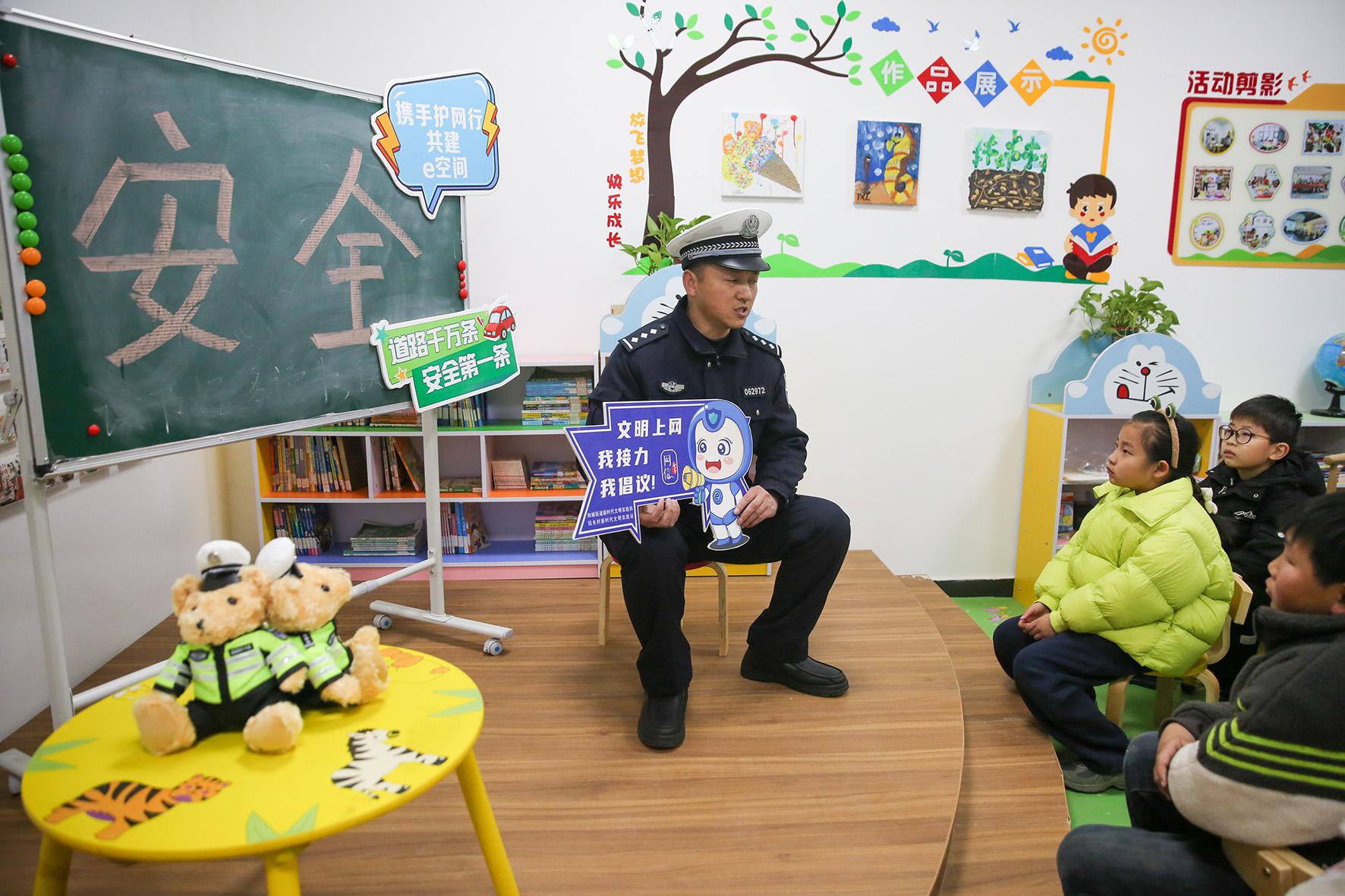 1月20日,江蘇省如皋市如城街道聯(lián)合如城交警中隊(duì)走進(jìn)錢(qián)長(zhǎng)村農(nóng)家書(shū)屋開(kāi)展寒假安全教育課堂,向孩子們普及交通安全知識(shí)。