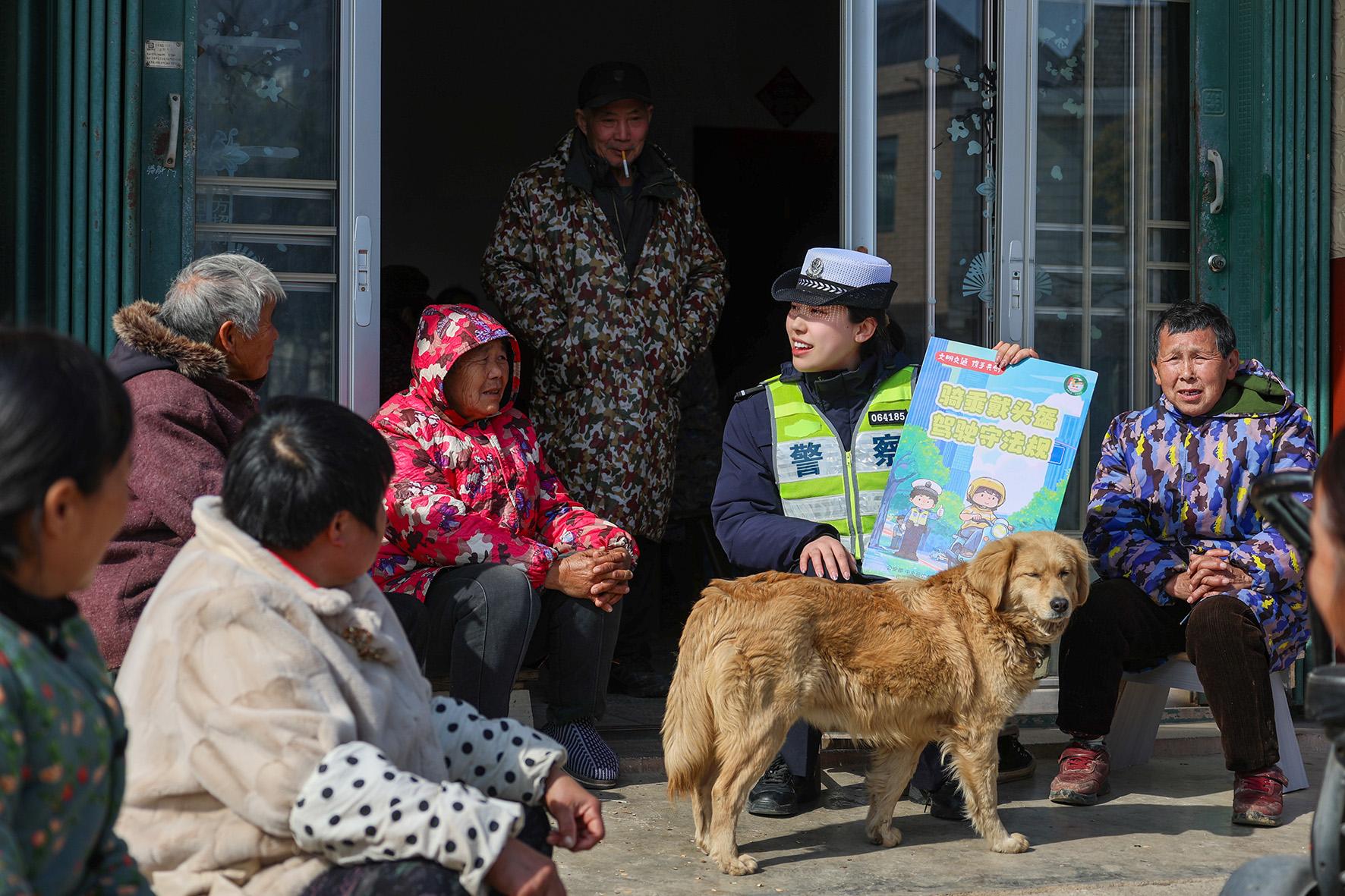 2月6日,安徽省巢湖市公安局交警大隊(duì)民警走進(jìn)農(nóng)村公路沿線村民家中,為村民講解不戴頭盔、酒駕等違法行為的危害。