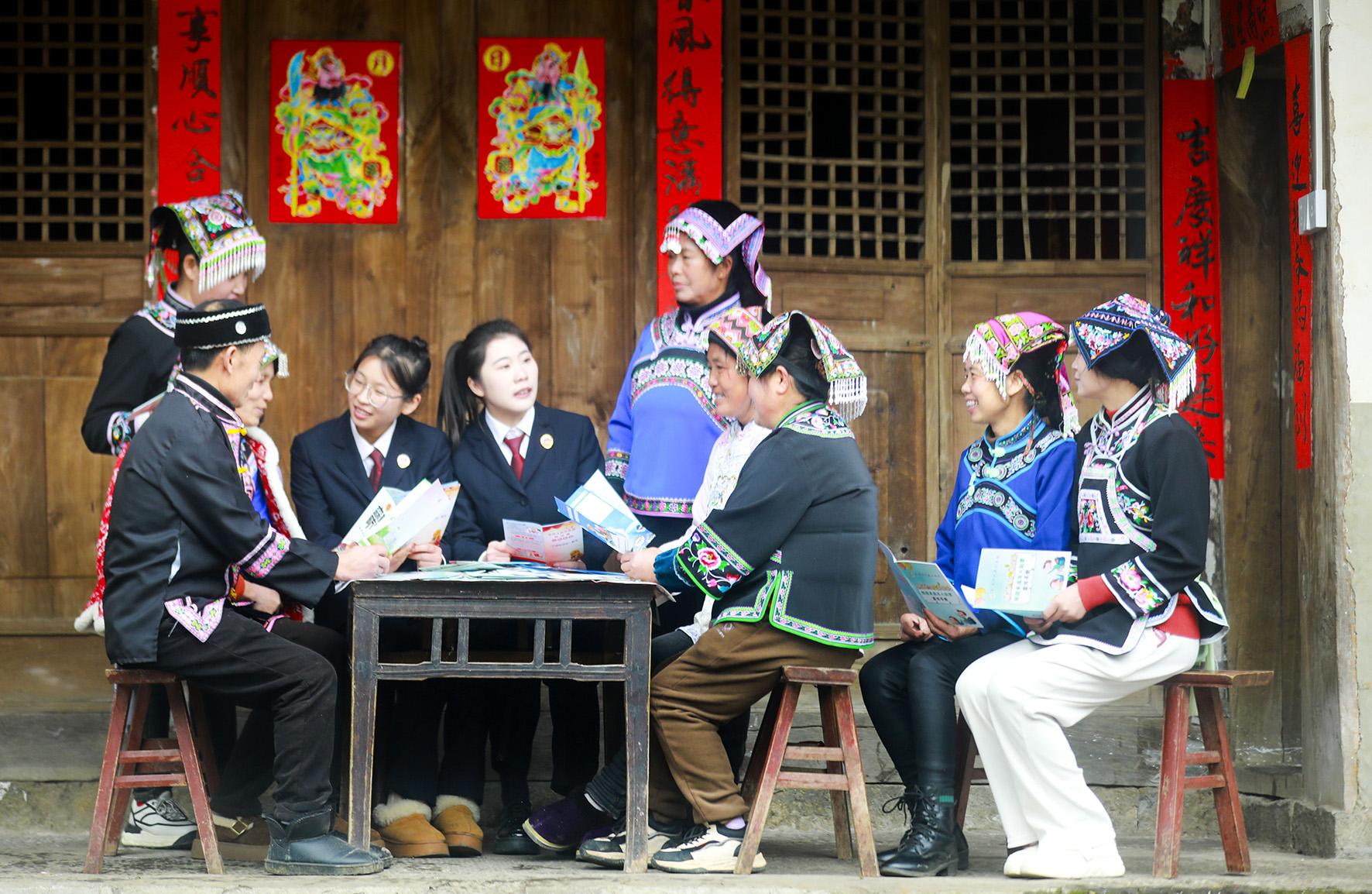 2月7日,貴州省黔西市人民檢察院檢察官走進轄區(qū)金碧鎮(zhèn)紅寨村,向布依族群眾宣傳反詐知識。