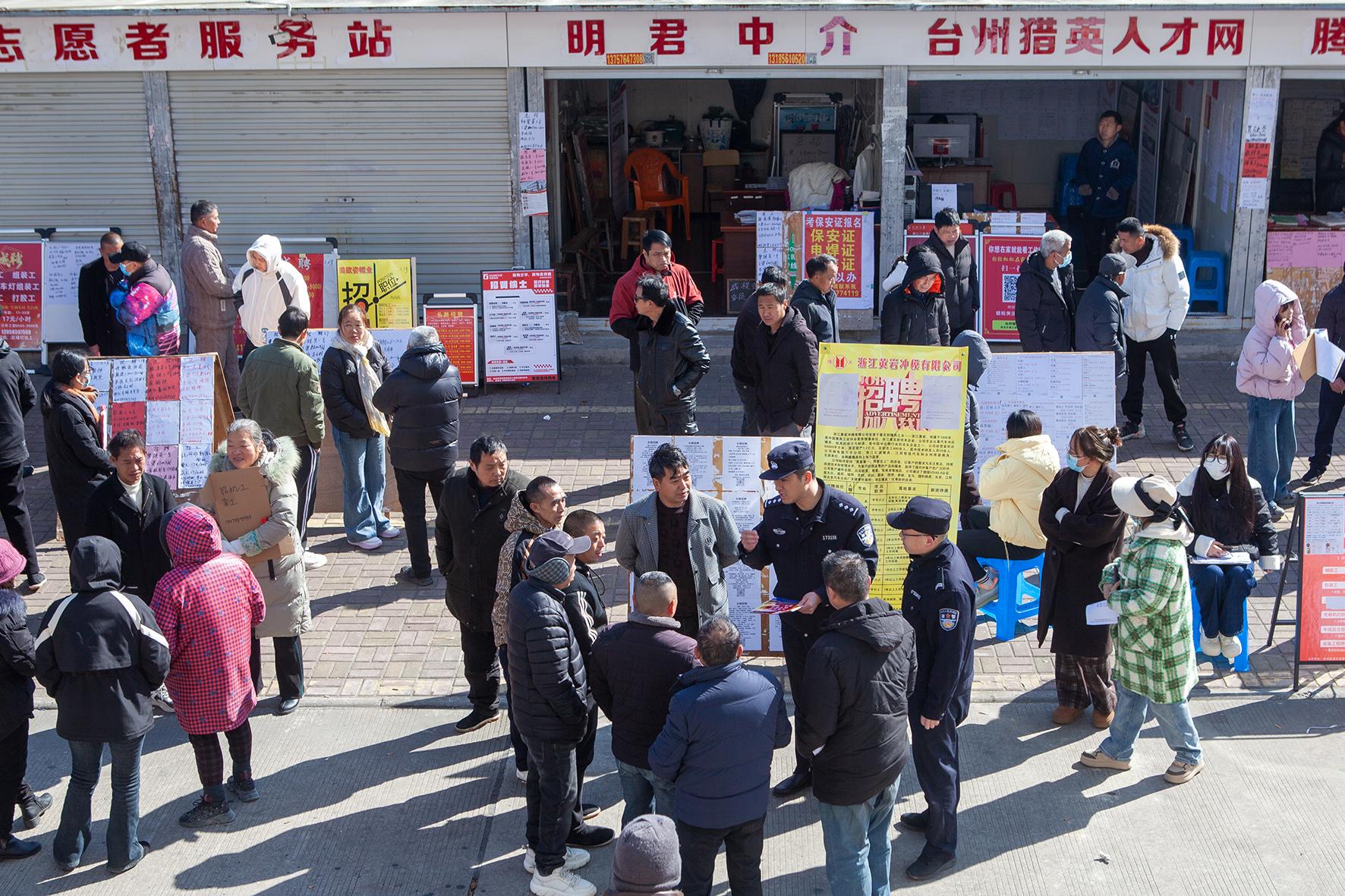 2月8日上午,浙江省臺(tái)州市黃巖區(qū)在人力資源市場(chǎng)舉辦首場(chǎng)新春招聘會(huì)。臺(tái)州市公安局黃巖分局城北派出所民警在現(xiàn)場(chǎng)開(kāi)展以反詐、禁毒為主的安全防范宣傳,提高務(wù)工人員的安全防范意識(shí)。