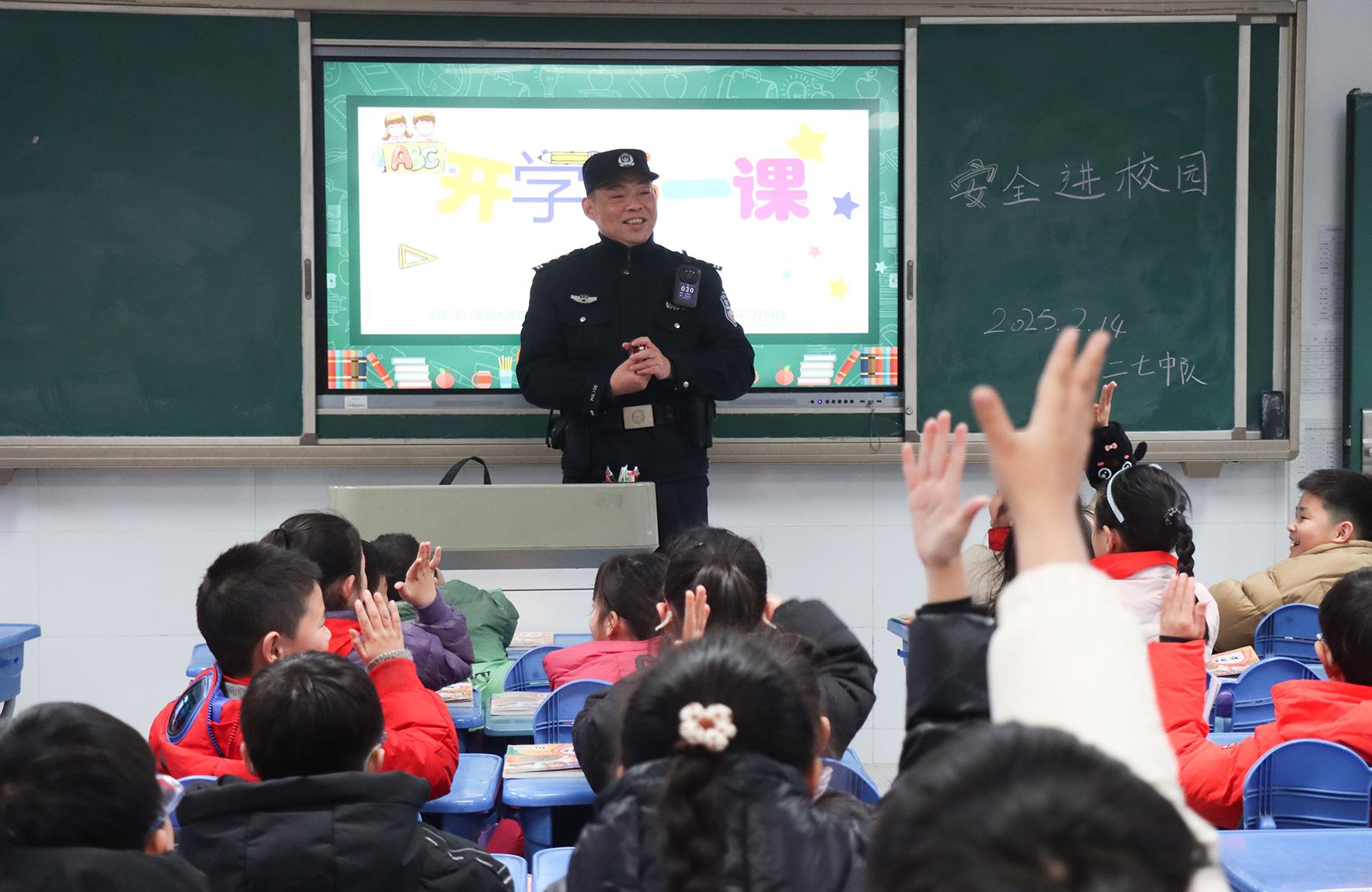 2月14日,安徽省合肥市公安局瑤海分局大通路派出所組織警力走進(jìn)轄區(qū)滁州路小學(xué)開展“開學(xué)第一課”活動(dòng)。