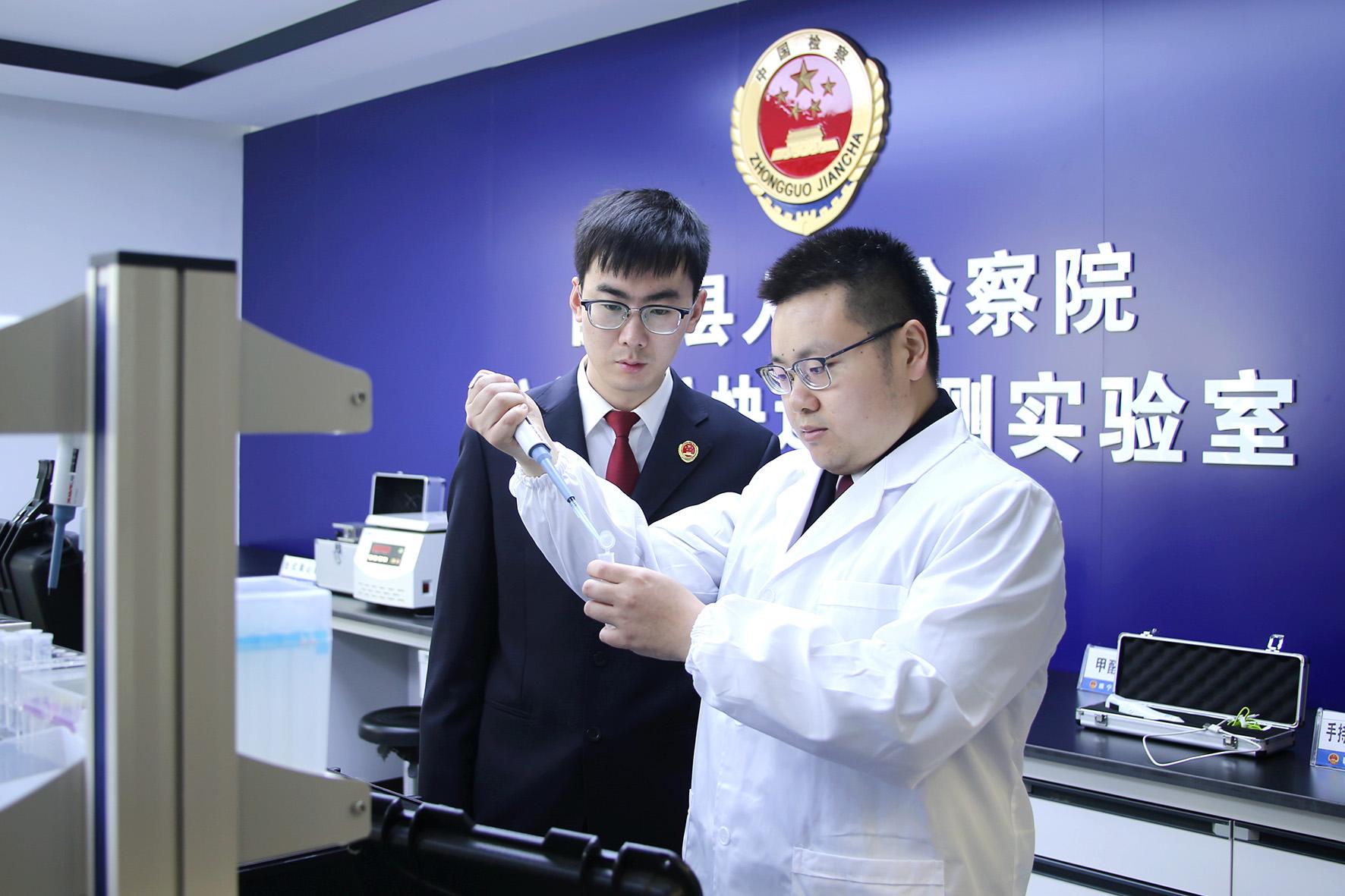 圖為辦案干警在公益訴訟快檢室對提取的污染物進行檢測。