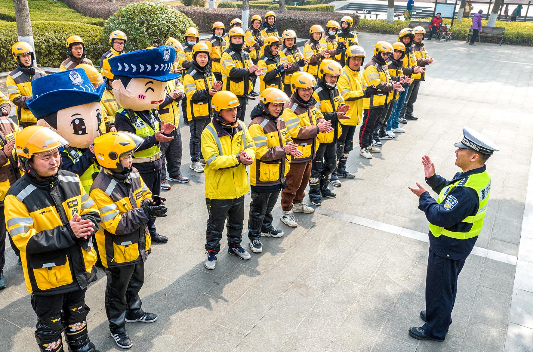2月26日,上海市公安局崇明分局交警支隊民警來到轄區(qū)南門廣場向外賣騎手開展交通安全宣傳。