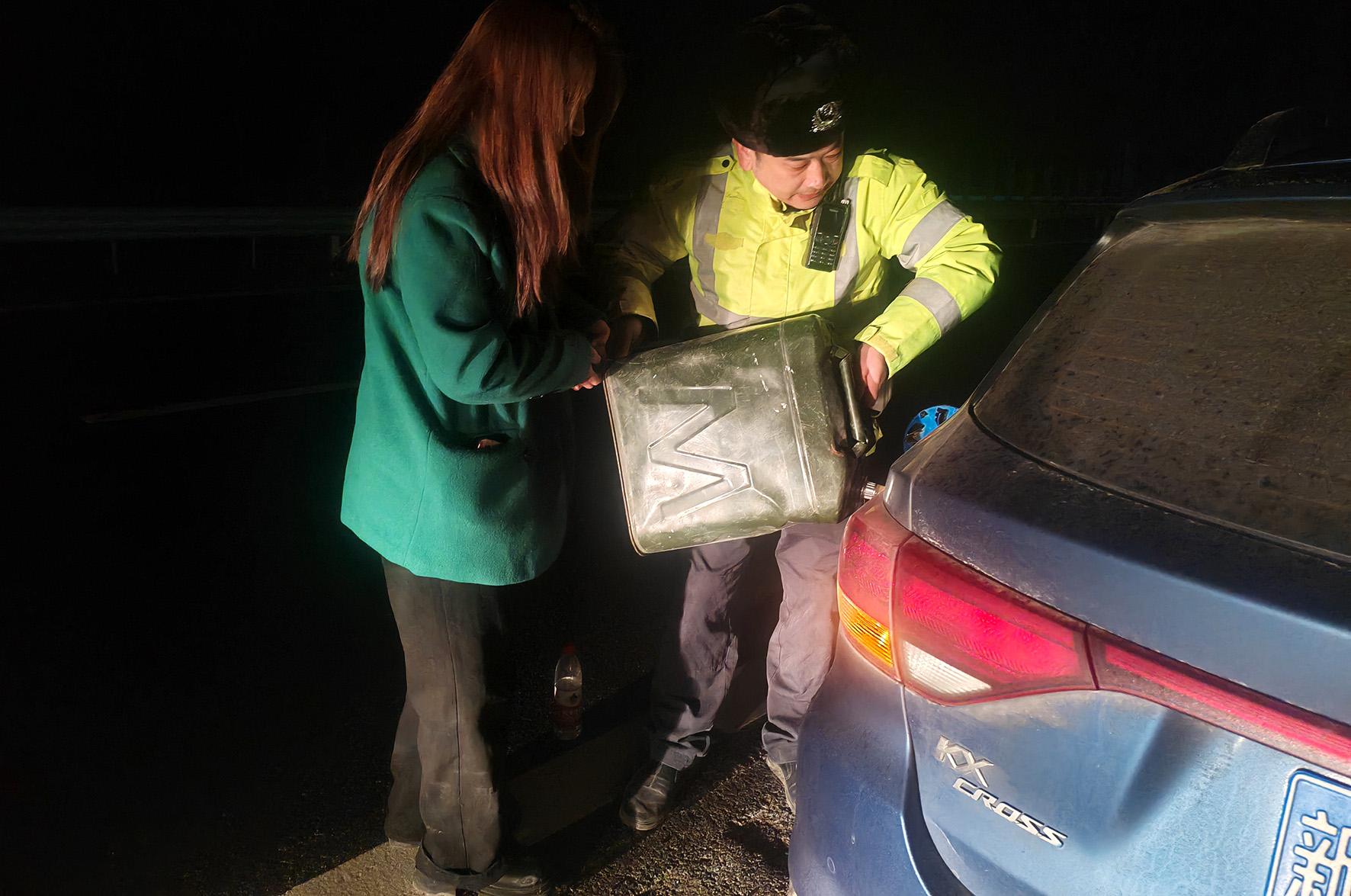 3月5日凌晨1時12分許,新疆克拉瑪依市公安局白堿灘區(qū)分局交警大隊巡邏組接到報警,在克拉瑪依市白堿灘區(qū)G3014高速157公里處,一位駕駛員因車輛沒油請求救援。警情就是命令,執(zhí)勤民警立即趕赴就近加油站協(xié)調(diào)購買散裝汽油,并及時送到求助地點。