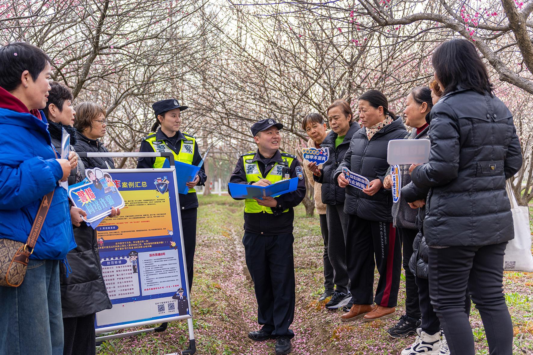 3月11日,上海市公安局崇明分局長(zhǎng)江派出所民警來到轄區(qū)梅花公園,向游客開展防范電信網(wǎng)絡(luò)詐騙宣傳。
