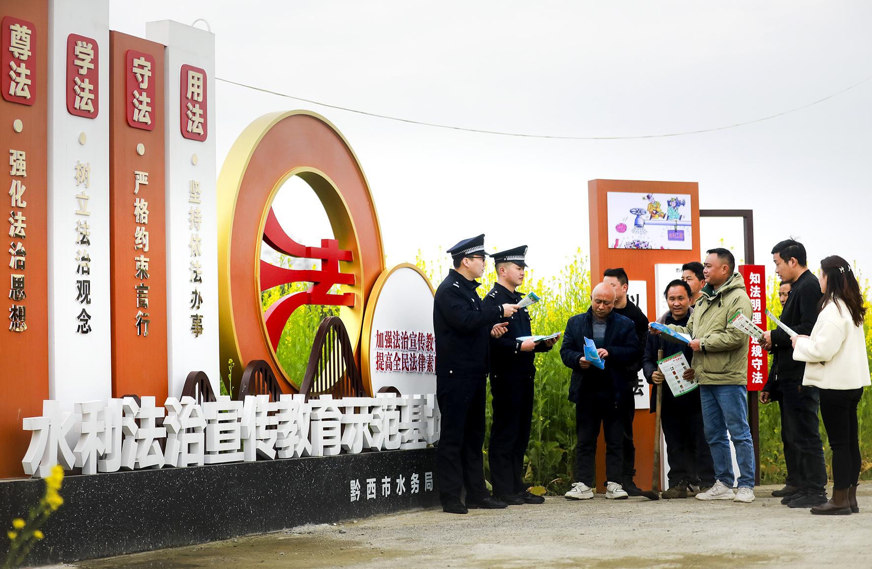 3月20日,貴州省黔西市公安局在轄區(qū)金碧鎮(zhèn)高標(biāo)準(zhǔn)農(nóng)田里,開展“法治宣傳進(jìn)田間”迎接世界水日活動。