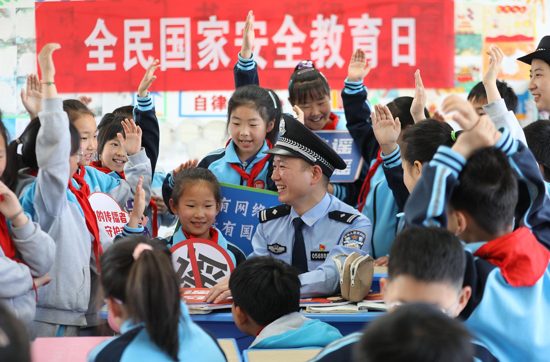 4月14日,山東省棗莊市公安局臺兒莊分局民警走進(jìn)明遠(yuǎn)實(shí)驗(yàn)小學(xué)開展全民國家安全教育日進(jìn)校園活動。
