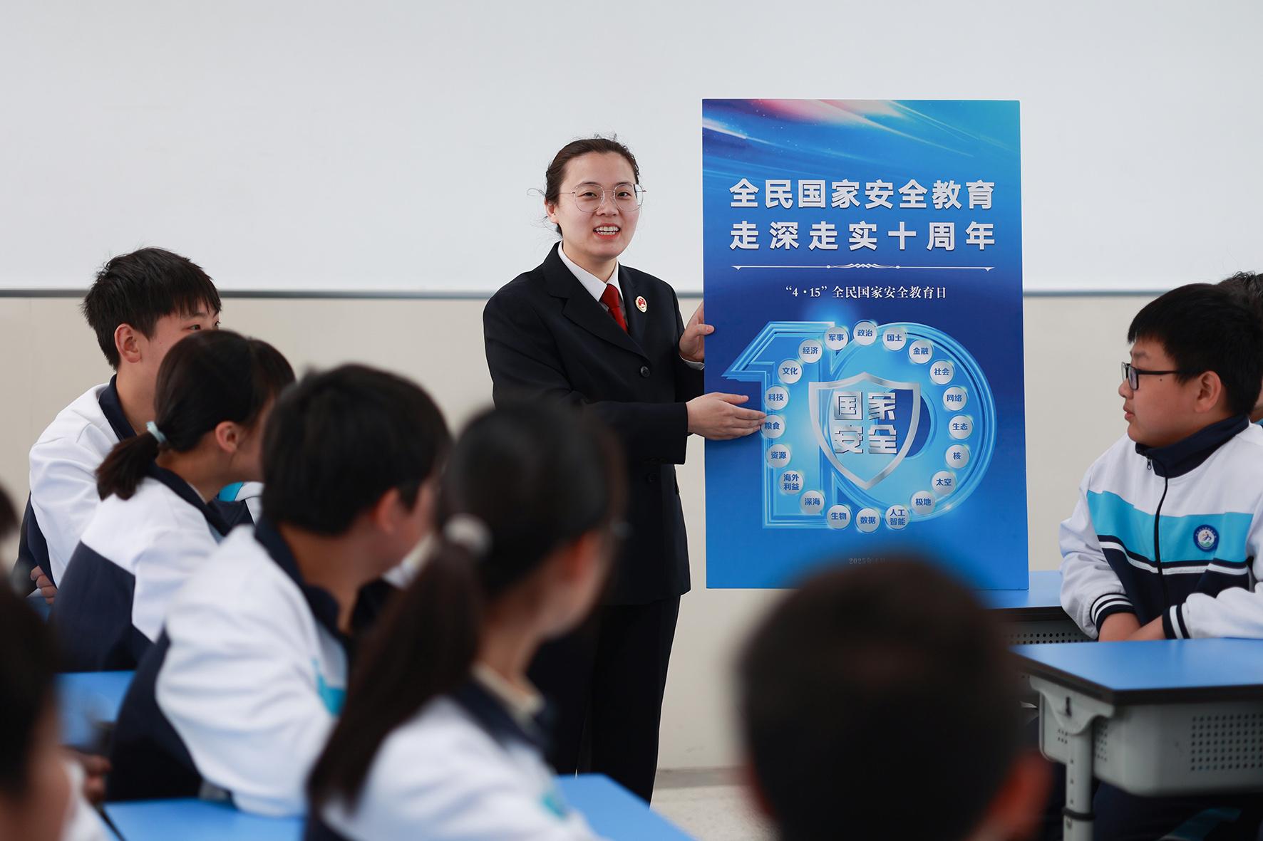 4月14日,江蘇省興化市司法局法治宣講員在興化市第一中學(xué)給學(xué)生們講解全民國家安全教育日相關(guān)知識。