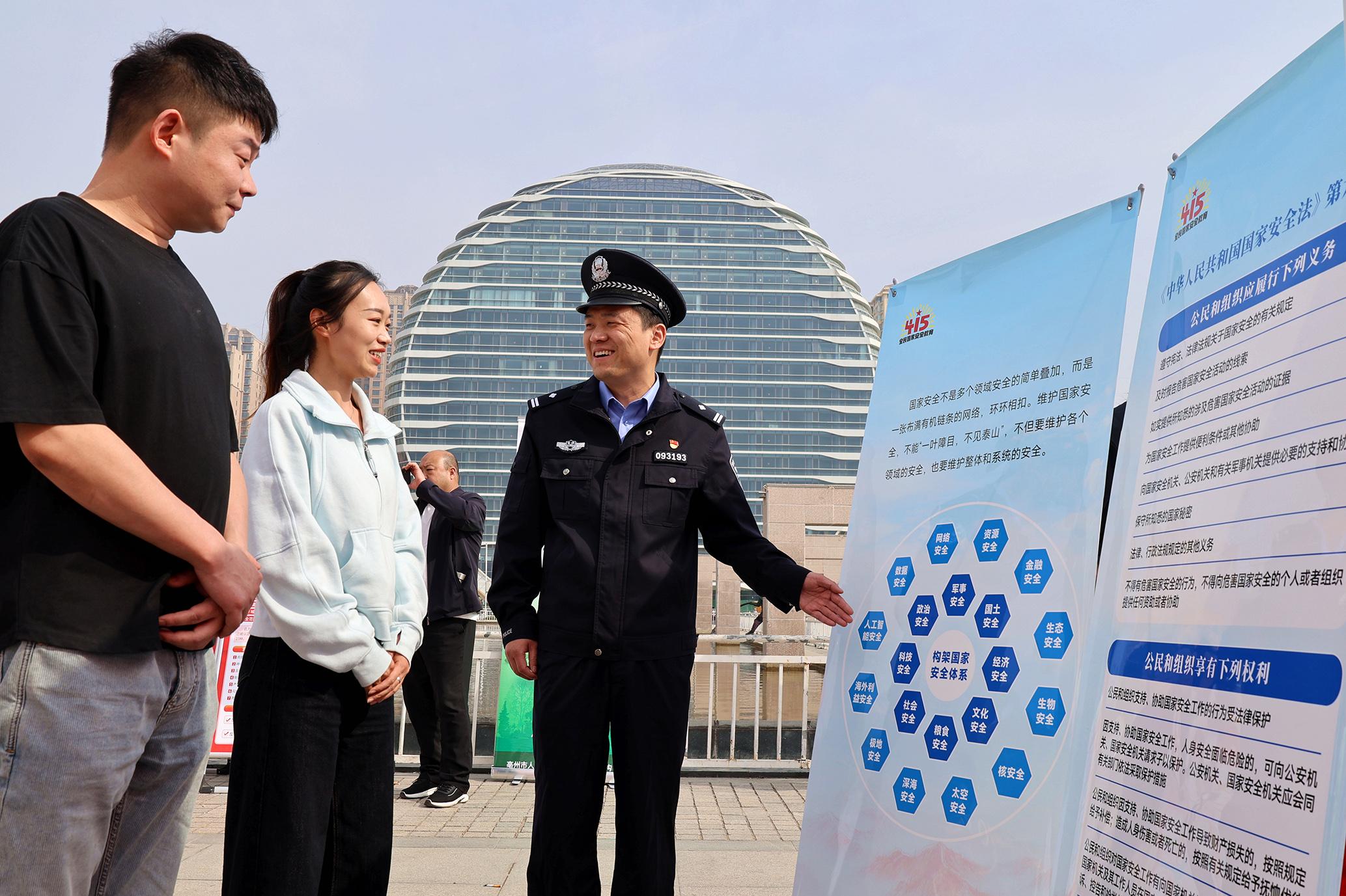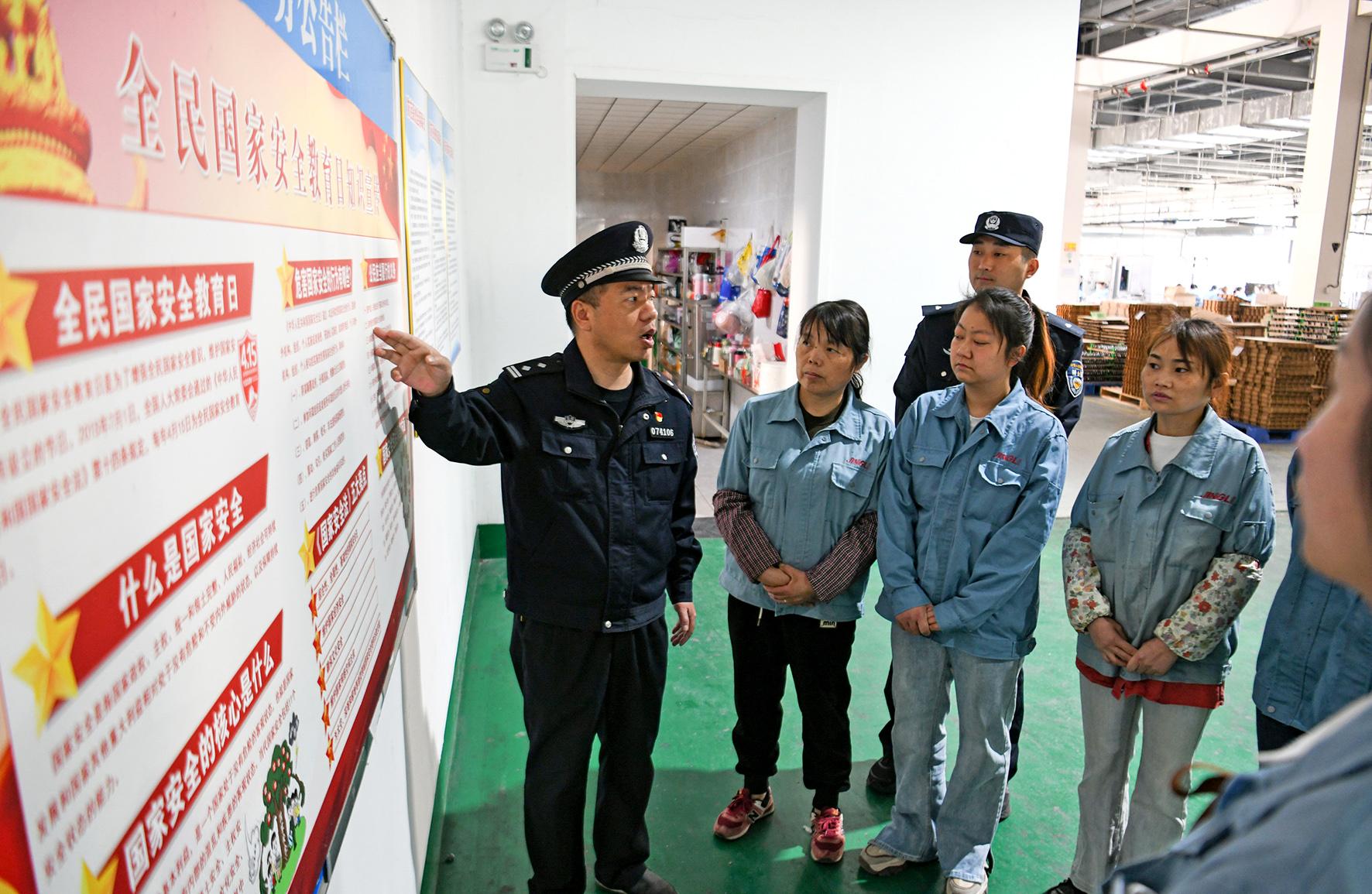 4月14日,安徽省馬鞍山市含山縣公安局民警走進(jìn)企業(yè),為企業(yè)職工講解國家安全知識。