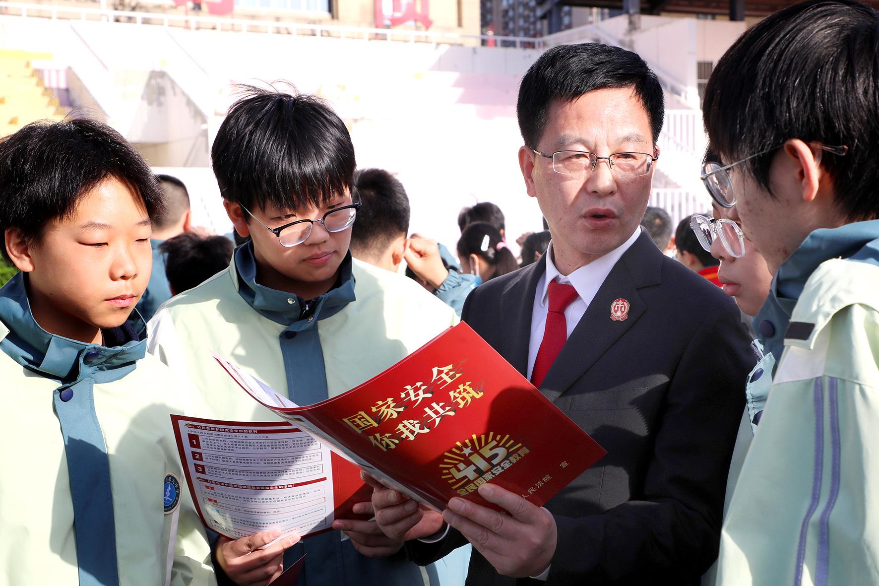 4月14日,在第十個(gè)全民國家安全教育日到來之際,山東省棗莊市市中區(qū)人民法院組織法官走進(jìn)東湖小學(xué),通過多種方式向?qū)W生普及國家安全相關(guān)法律法規(guī)知識,增強(qiáng)學(xué)生們對總體國家安全觀的認(rèn)識,共筑國家安全防線。