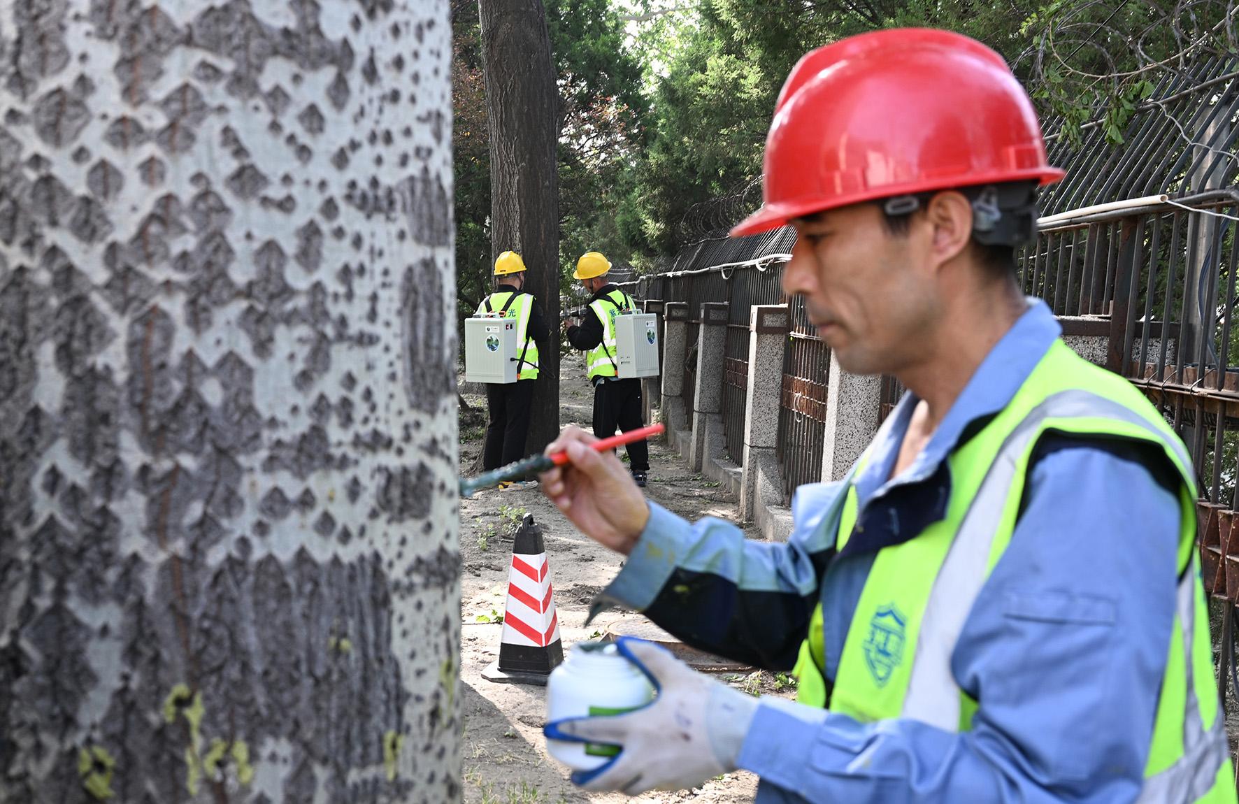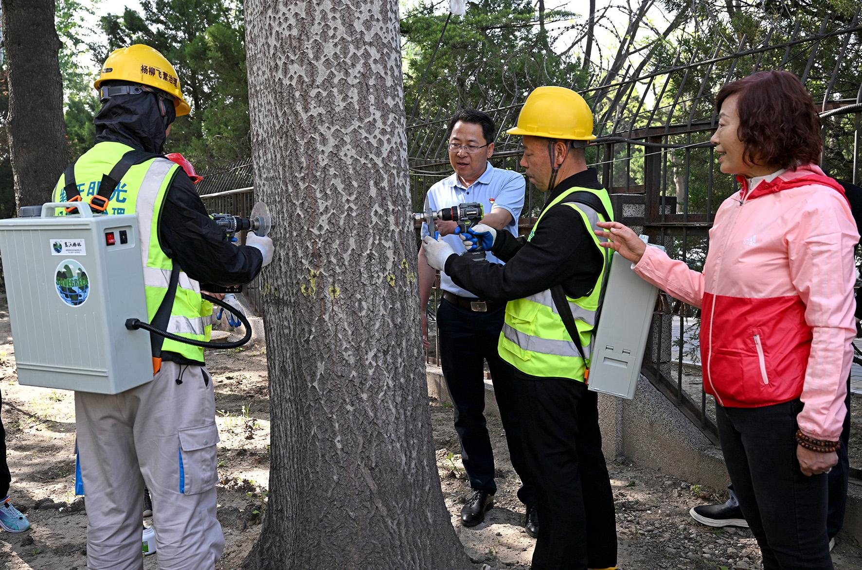 據(jù)悉,楊柳飛絮治理的藥劑由北京市園林綠化科學(xué)研究院研制,并由專業(yè)人員進(jìn)行注射。