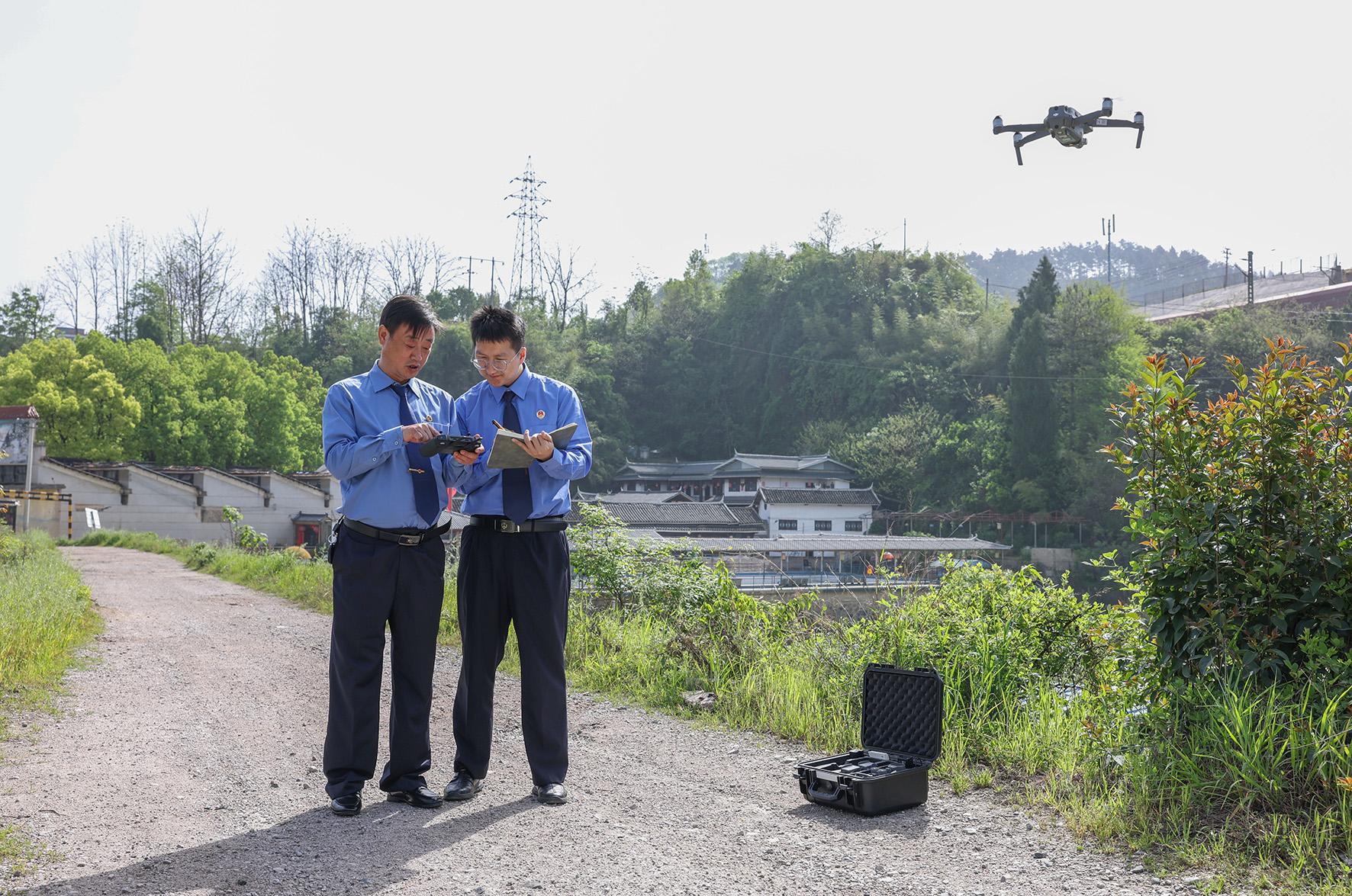 4月14日,貴州省銅仁市玉屏侗族自治縣人民檢察院檢察干警對一起未批先建違法占地案件采取無人機航拍取證。