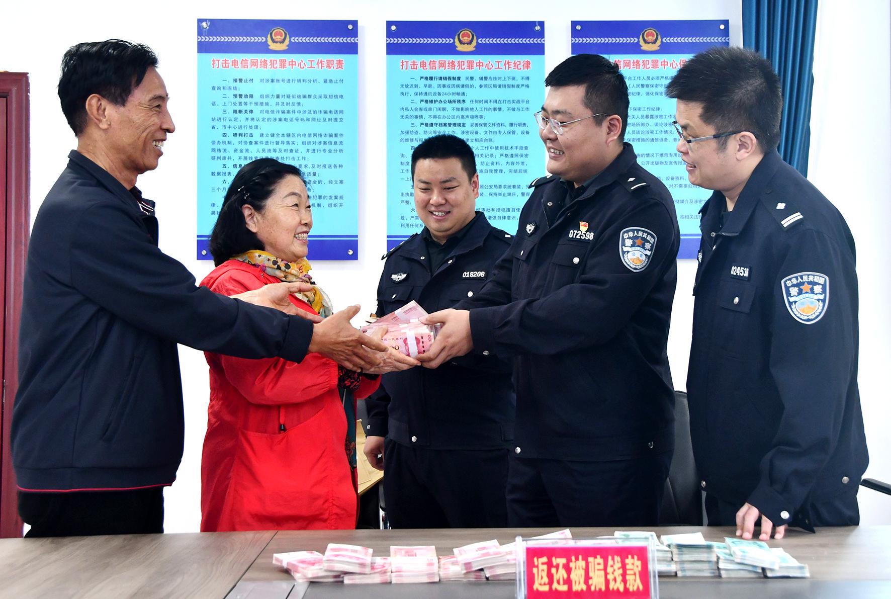 4月22日,河北省邯鄲市永年區(qū)公安局刑警大隊機動中隊舉行返贓儀式,將近日破獲的一起電信網(wǎng)絡(luò)詐騙案追回的30萬元涉案錢款返還給群眾。