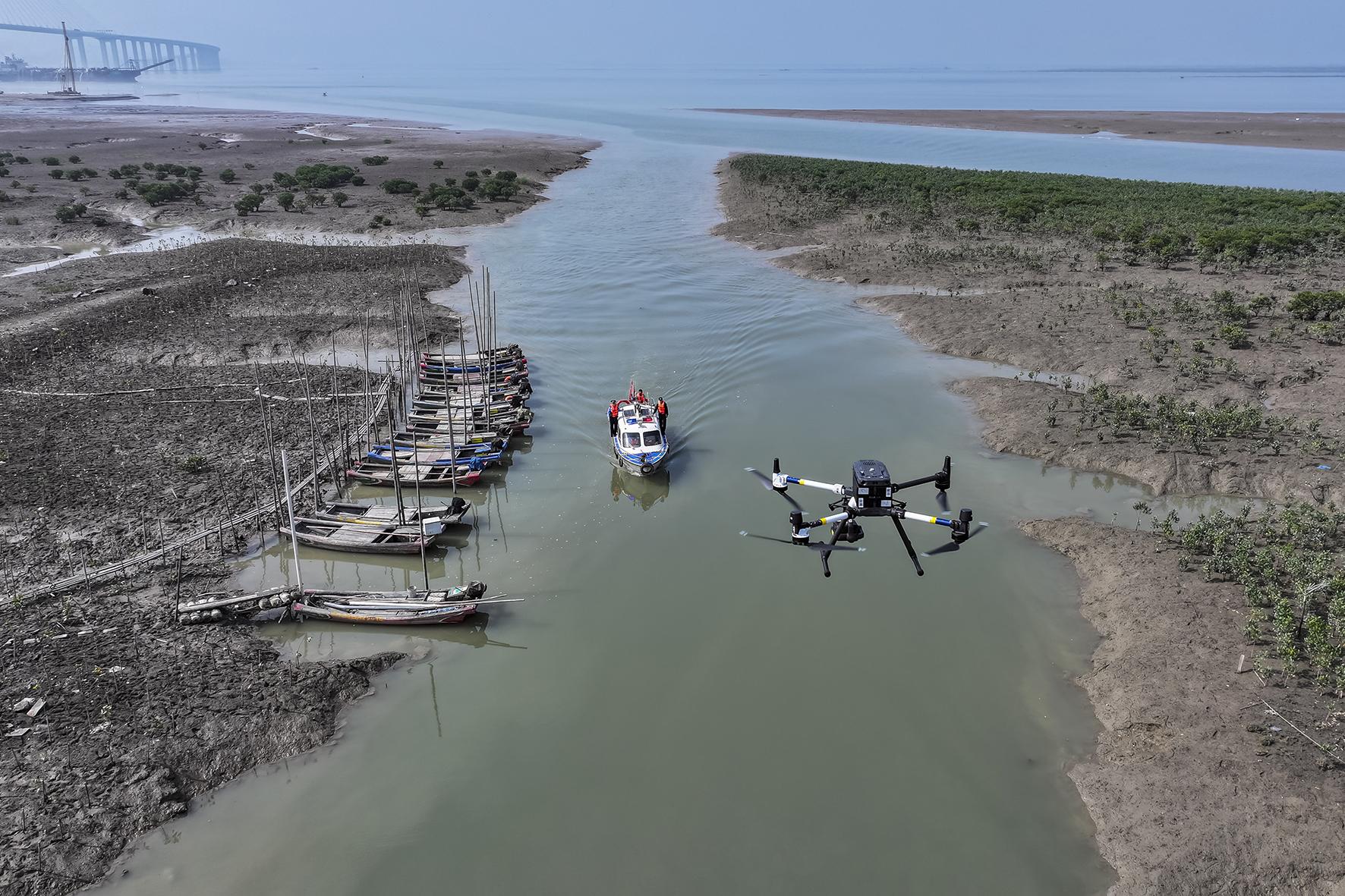 4月22日,福建省漳州市公安局臺(tái)商投資區(qū)分局民警和聯(lián)勤單位人員,運(yùn)用巡邏艇+無(wú)人機(jī)等方式,對(duì)九龍江入??诒卑稘竦厣鷳B(tài)進(jìn)行安全巡查。