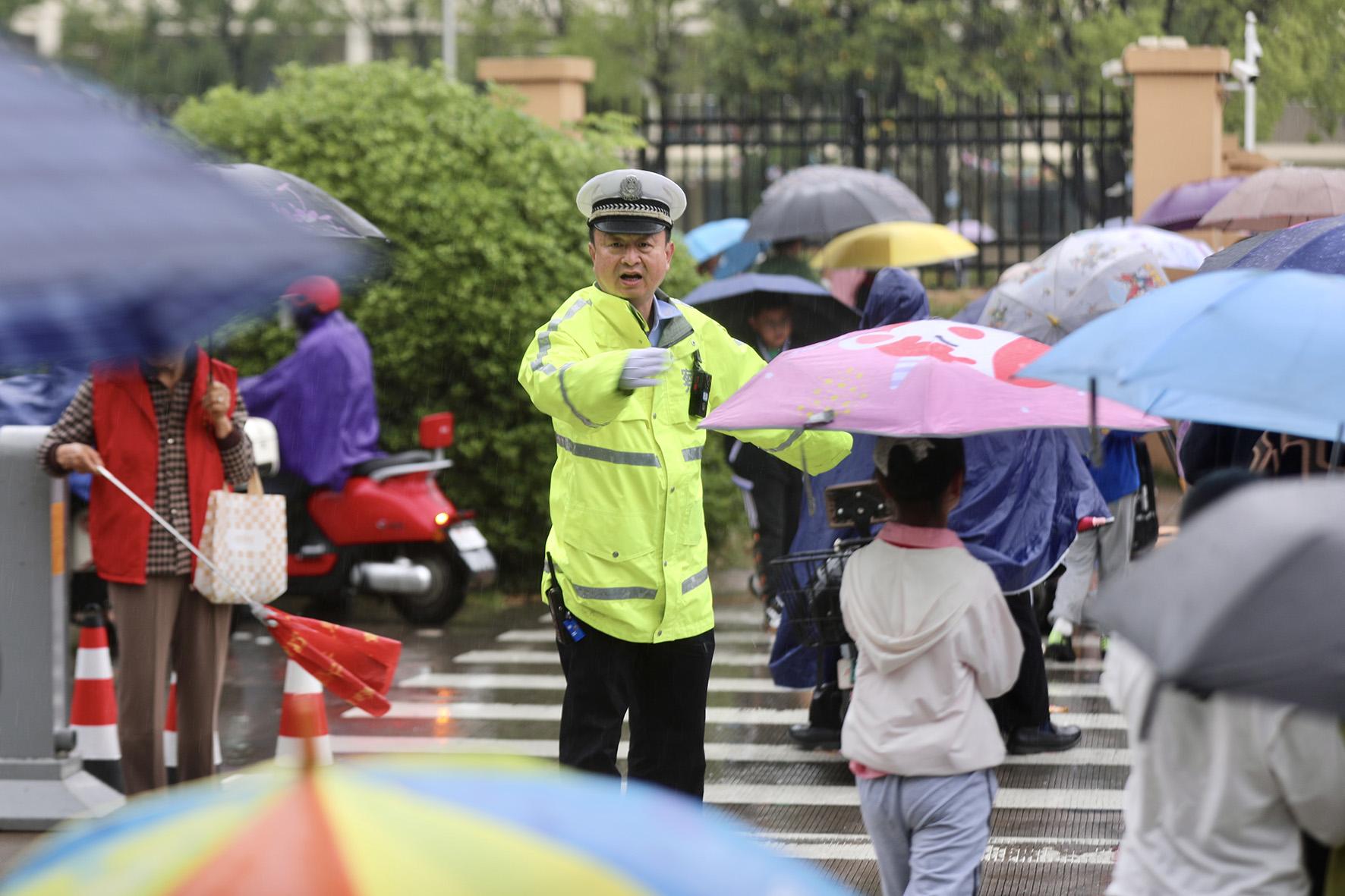 5月8日14時左右,安徽省合肥市普降大雨。合肥市公安局交警支隊公巡一大隊采取有力措施加強雨天道路交通管控,堅守“護學(xué)崗”,暖心護航平安路。