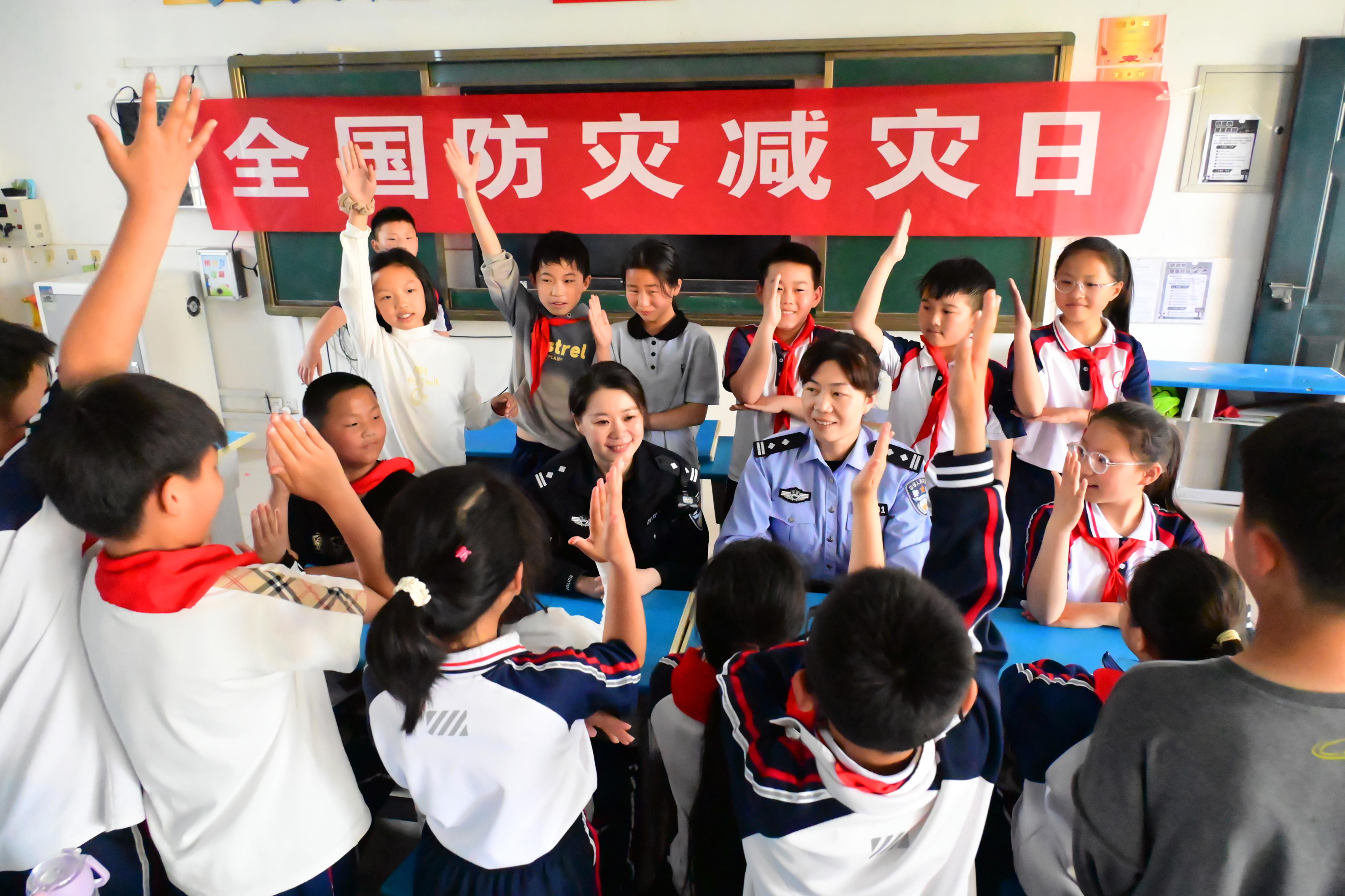 5月9日,安徽省蚌埠市固鎮(zhèn)縣公安局谷陽派出所民警在第一小學(xué)向?qū)W生們講解地震、水災(zāi)、火災(zāi)等各類自然災(zāi)害的避險(xiǎn)方法。