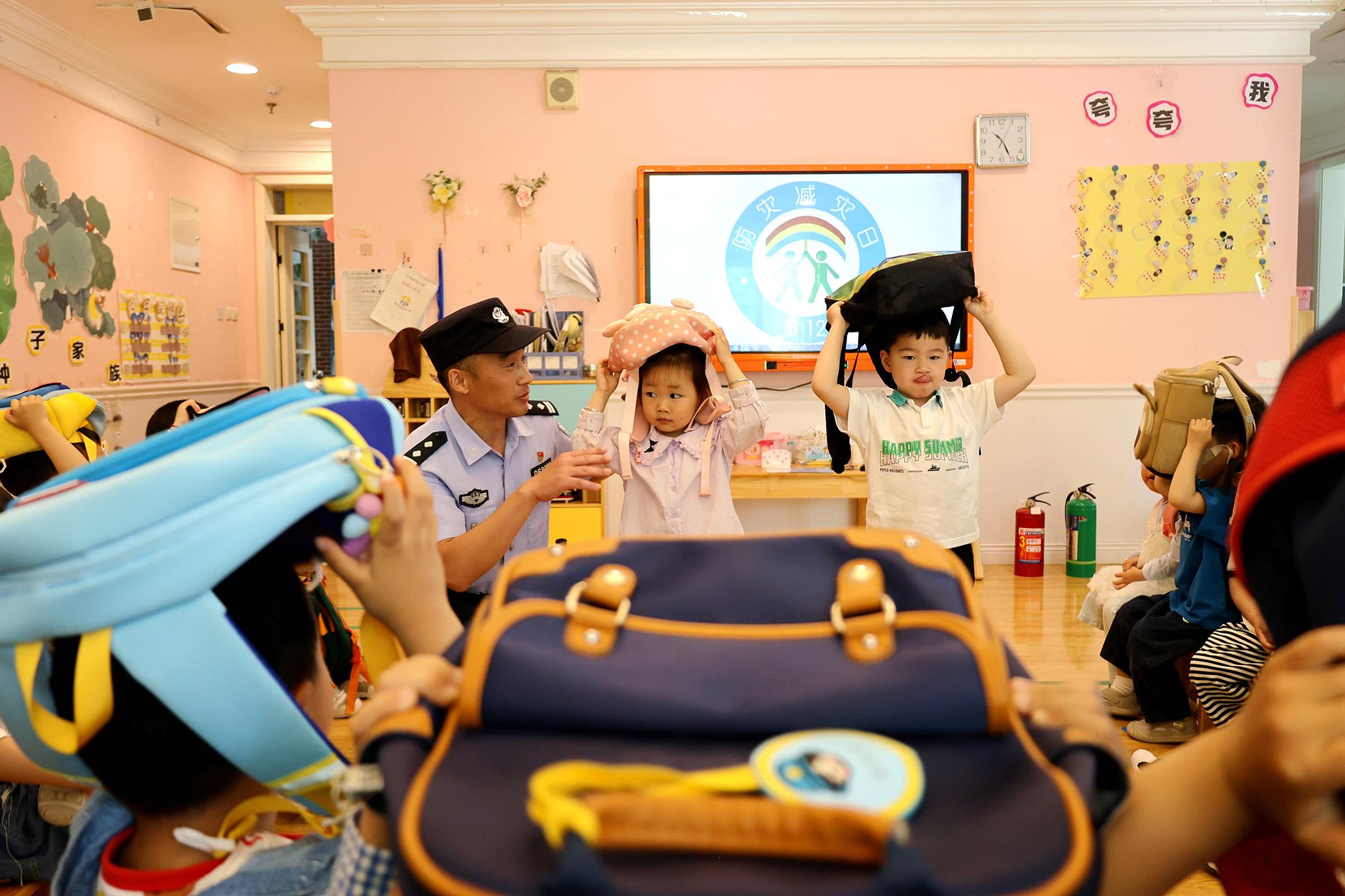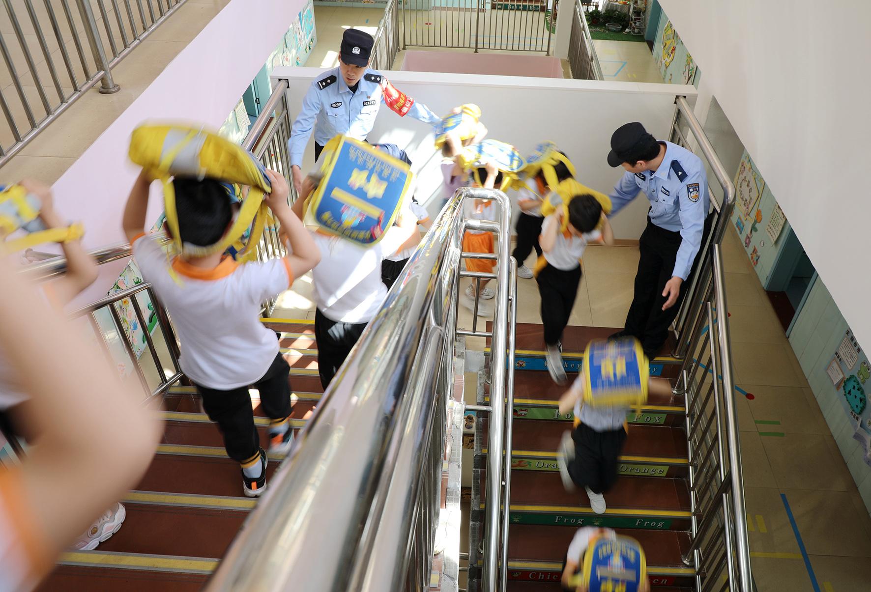 5月12日,安徽省亳州市公安局高新區(qū)分局希夷派出所民警走進(jìn)轄區(qū)幼兒園,開展防震避險(xiǎn)疏散演練。