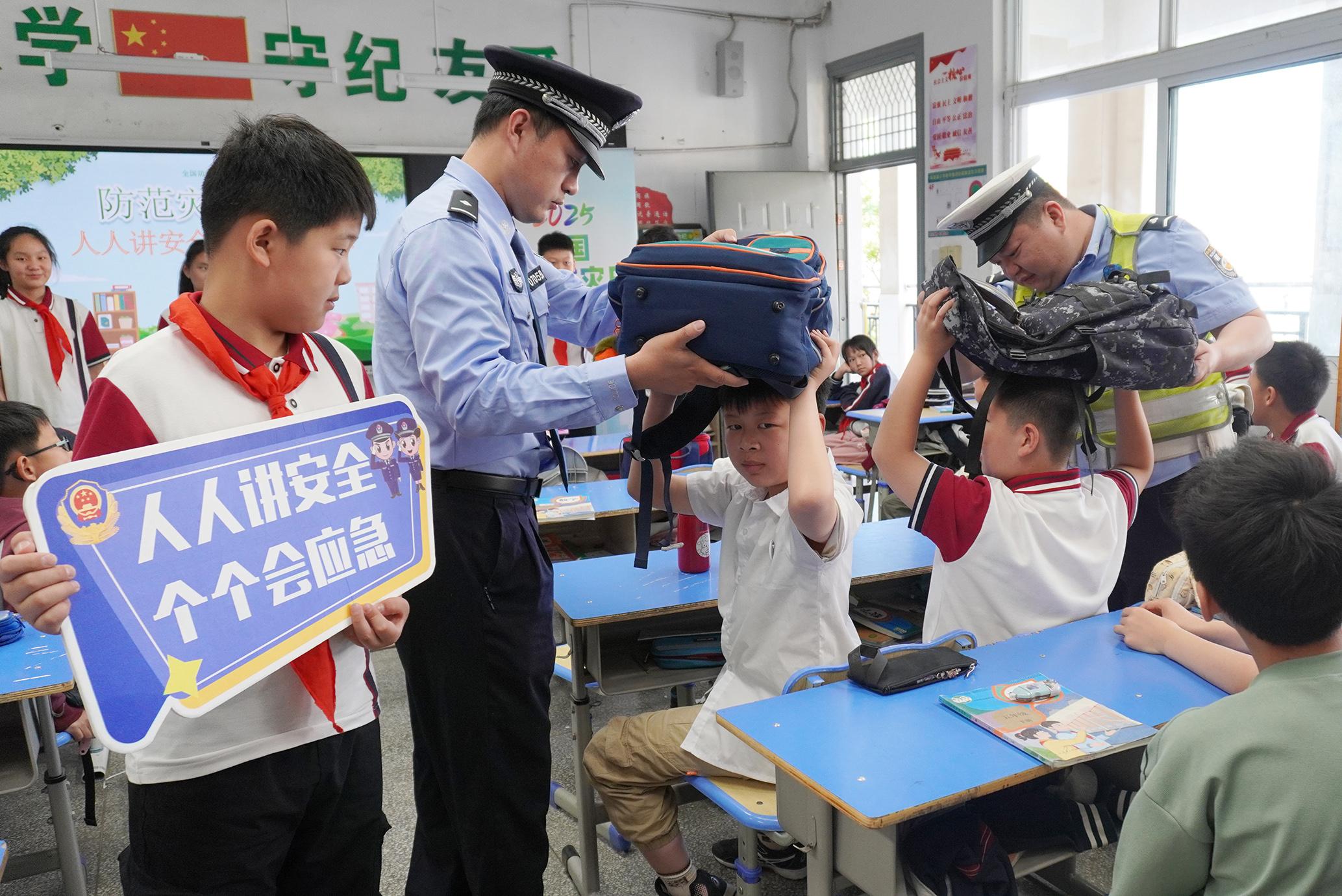 5月12日,安徽省合肥市公安局瑤海分局龍崗派出所民警聯(lián)合合肥義警走進(jìn)轄區(qū)校園開展防災(zāi)減災(zāi)宣傳教育活動(dòng)。
