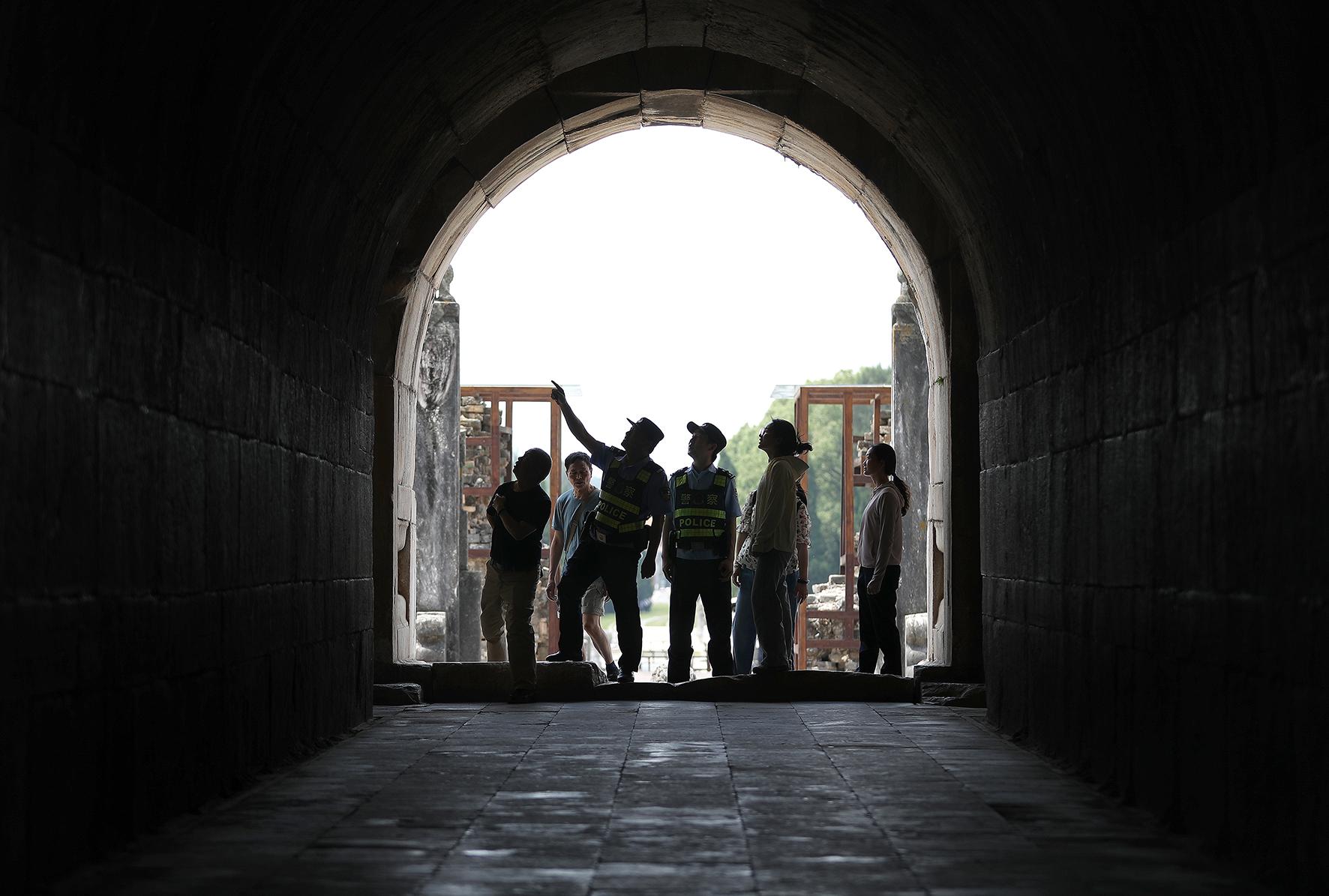 5月13日,在世界文化遺產(chǎn)湖北省鐘祥市明顯陵,鐘祥市公安局皇莊水陸派出所民警在巡查過程中化身“普法導(dǎo)游”,一邊為游客介紹明代皇家陵寢的獨(dú)特魅力,一邊積極宣傳新修訂的《中華人民共和國文物保護(hù)法》知識(shí)。