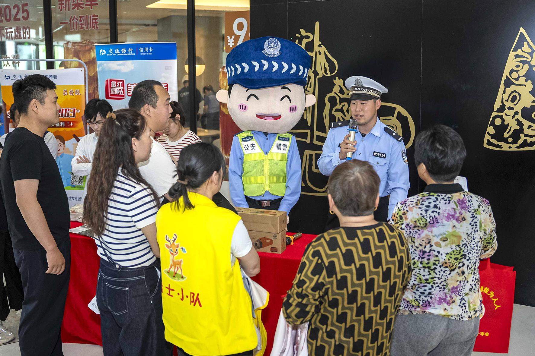 5月15日,上海市公安局崇明分局交管支隊(duì)組織民輔警走進(jìn)轄區(qū)萬達(dá)廣場(chǎng),開展“平安交通伴我行”主題宣傳活動(dòng)。
