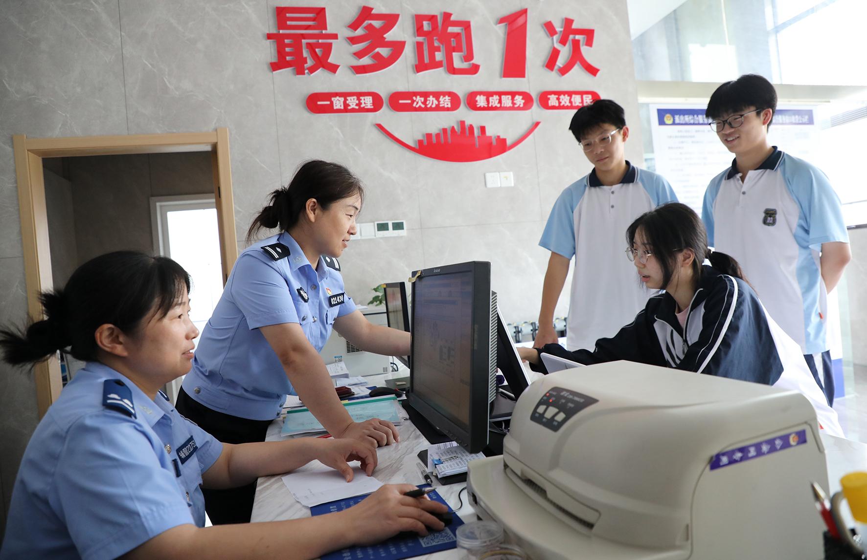 5月20日,江西省九江市公安局濂溪分局劉家塘派出所為考生開(kāi)設(shè)辦證“綠色通道”,戶籍窗口民警周末和午休時(shí)間一律在崗,采取延時(shí)、錯(cuò)時(shí)、預(yù)約等方式為學(xué)生辦證提供24小時(shí)服務(wù)。