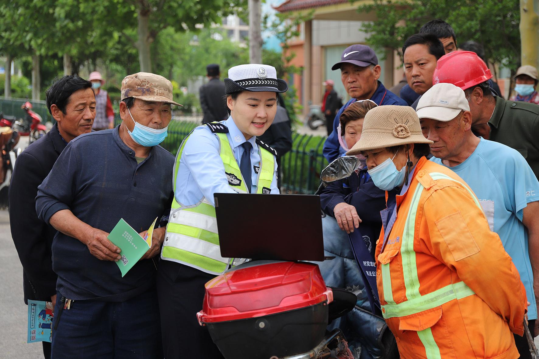 5月20日,山東省臨沂市公安局交警支隊(duì)郯城大隊(duì)民警輔警結(jié)合務(wù)工人員出行特點(diǎn),向他們普及道路交通法律法規(guī)和安全知識(shí)。