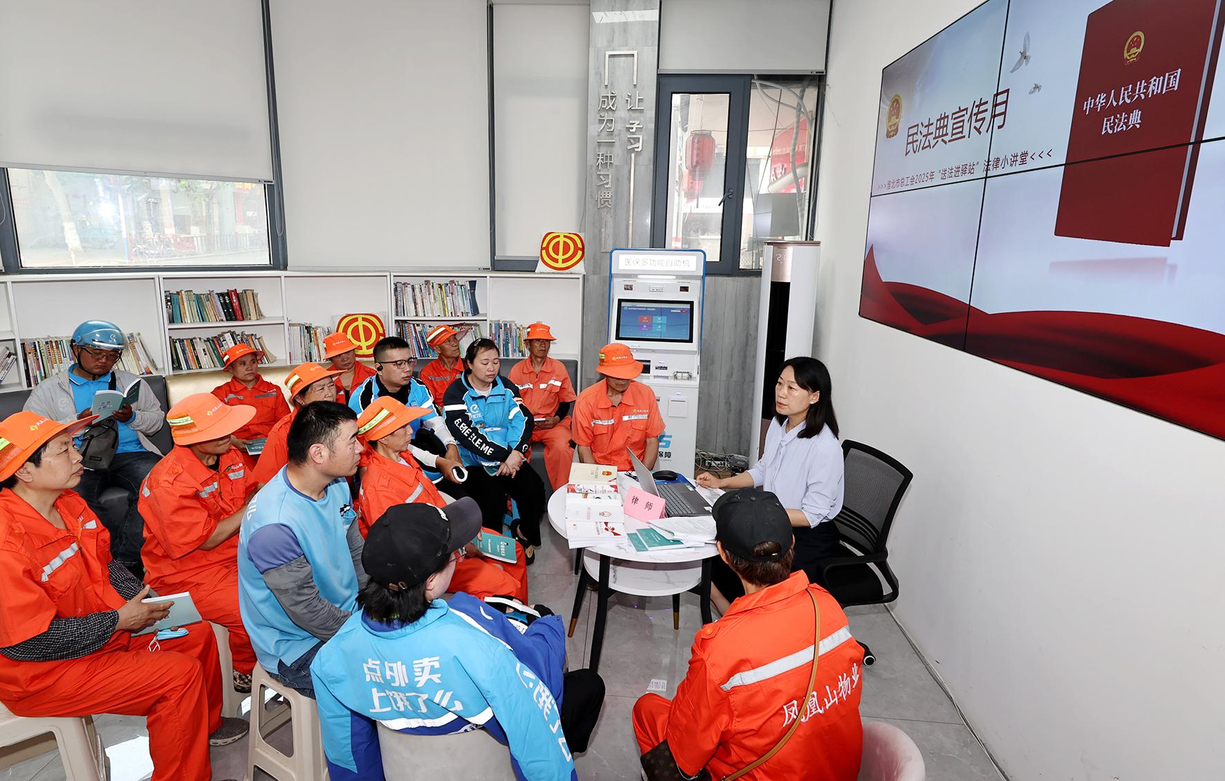 5月22日,安徽省淮北市總工會邀請專職律師走進(jìn)工會驛站,以案說“法”、以案釋“典”,幫助快遞外賣員、物業(yè)管理員等新業(yè)態(tài)勞動者提升依法維護(hù)自身合法權(quán)益的意識和能力。