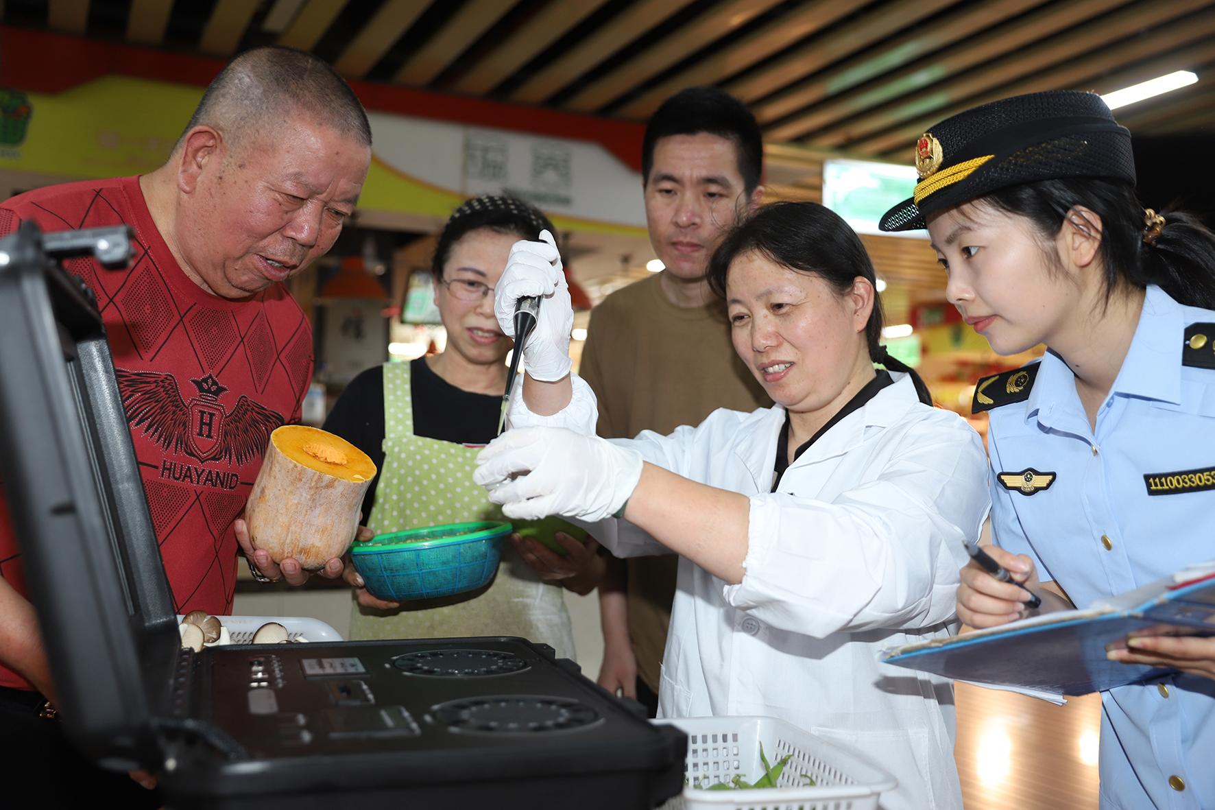 5月29日,浙江省臺(tái)州市路橋區(qū)橫街鎮(zhèn)市場(chǎng)監(jiān)督管理所推出“你點(diǎn)我檢”舉措,在菜市場(chǎng)門口為群眾提供蔬菜農(nóng)藥殘留檢測(cè)服務(wù)。