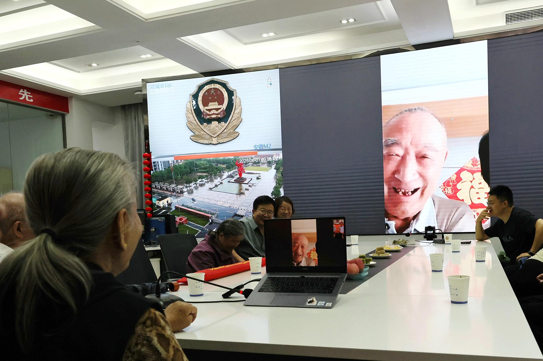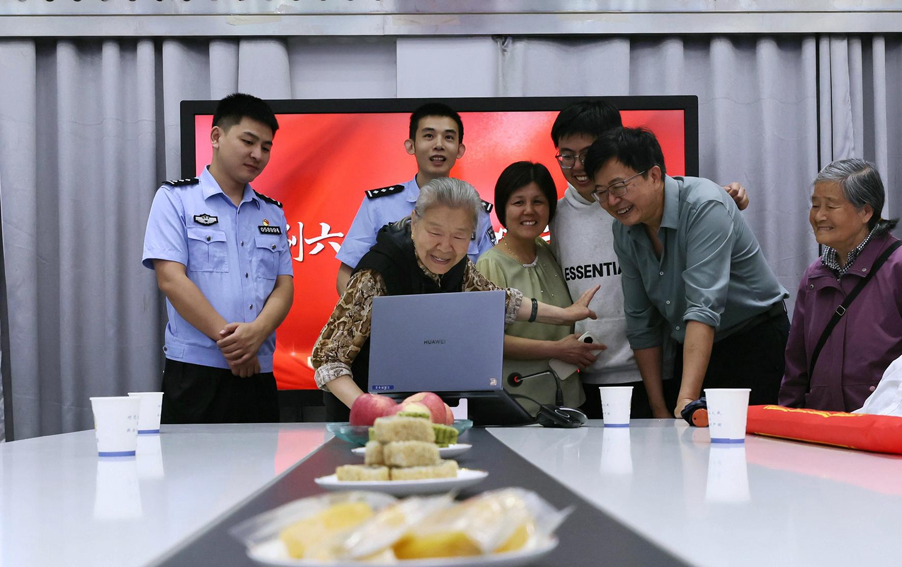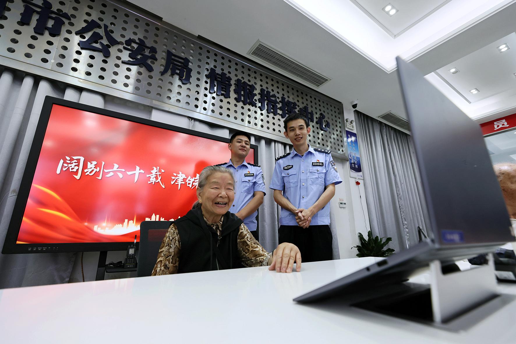 6月1日,79歲的高奶奶攜家人來到安徽省寧國市公安局指揮中心大廳,與遠(yuǎn)在千里的天津親人云團圓。