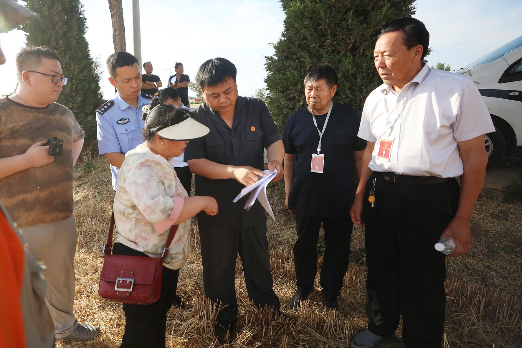 6月3日,河南省安陽(yáng)縣人民法院執(zhí)行局法官一行來(lái)到轄區(qū)北郭鄉(xiāng),對(duì)一起親兄弟之間土地承包經(jīng)營(yíng)權(quán)糾紛案進(jìn)行強(qiáng)制執(zhí)行。在安陽(yáng)市、縣兩級(jí)人大代表現(xiàn)場(chǎng)監(jiān)督見證下,對(duì)涉案土地劃定了新的界線,最終案件得到解決。
