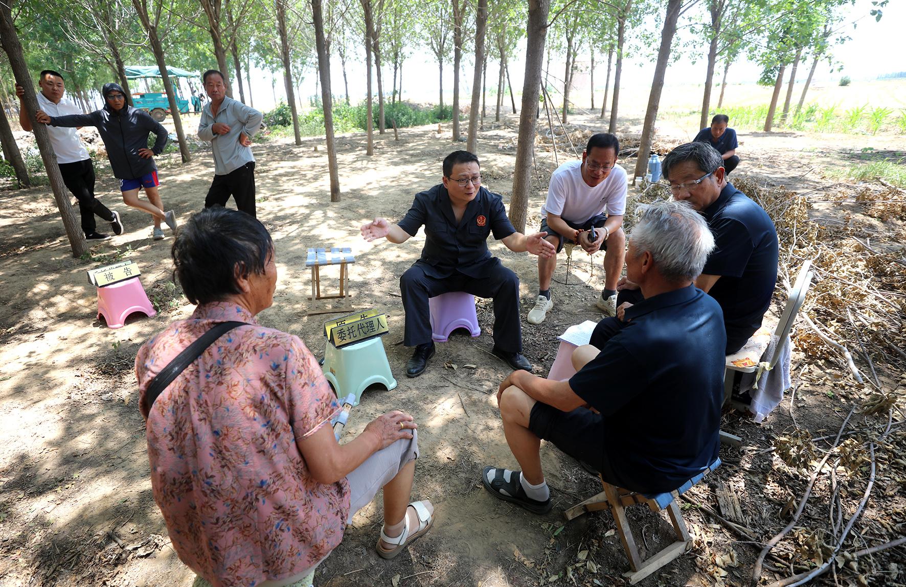6月17日上午,河南省安陽縣人民法院組織法官深入轄區(qū)高莊鎮(zhèn)田間地頭巡回審理一起土地承包經(jīng)營權(quán)糾紛案。其間,法官對(duì)土地現(xiàn)狀進(jìn)行了實(shí)地勘驗(yàn),現(xiàn)場開庭審理,就地組織調(diào)解,以優(yōu)質(zhì)高效的司法服務(wù)把糾紛解決在群眾“家門口”。