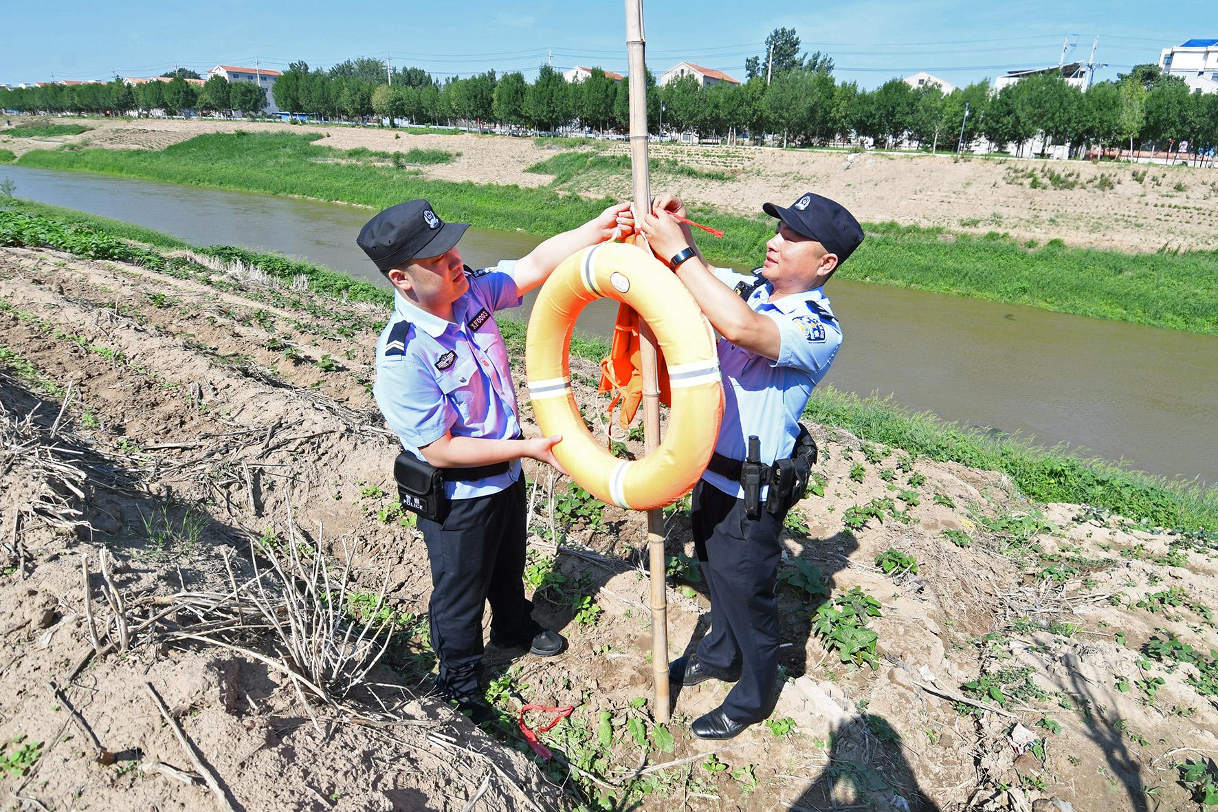 7月3日,河南省??h公安局衛(wèi)溪派出所組織民輔警深入轄區(qū)河道、池塘等重點(diǎn)水域開展安全隱患排查,增設(shè)救生圈、救生衣等安全防護(hù)設(shè)施,全力織牢防溺水安全網(wǎng)。