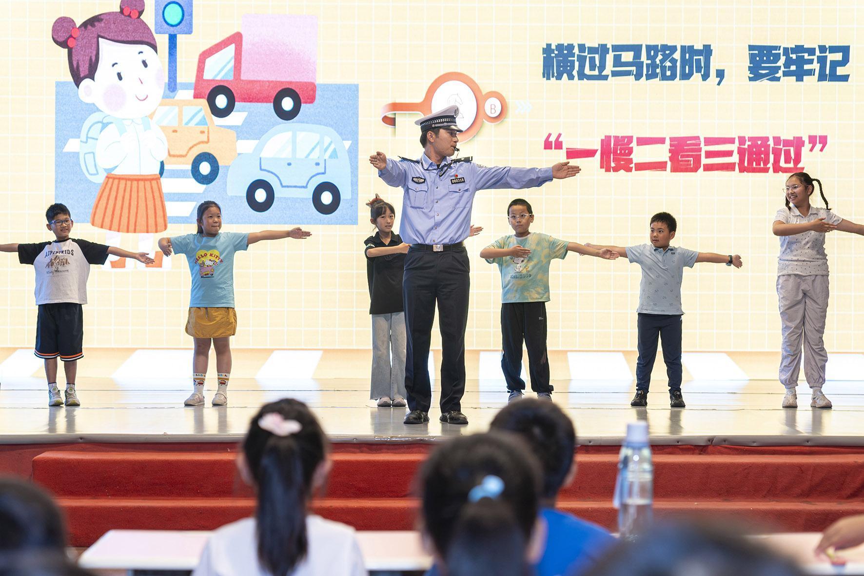 圖為7月4日,民警為孩子們上暑期交通安全課。