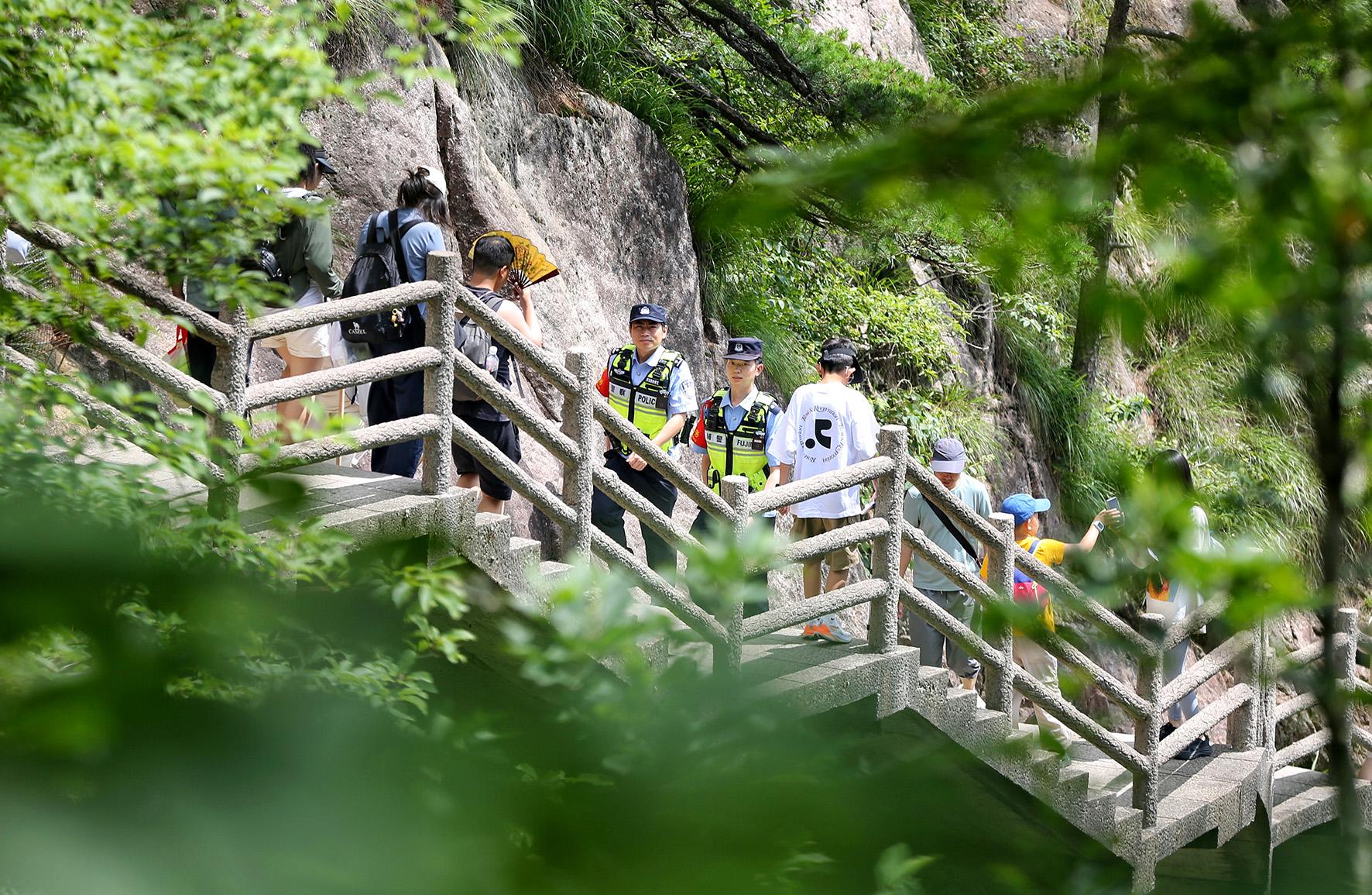 隨著夏季旅游高峰期的到來,安徽省黃山風景區(qū)公安局積極采取“警務+服務”,用“溫度”守護旅游“熱度”的勤務模式,推動警力前置,多措并舉全面筑牢夏季護游安全防線。