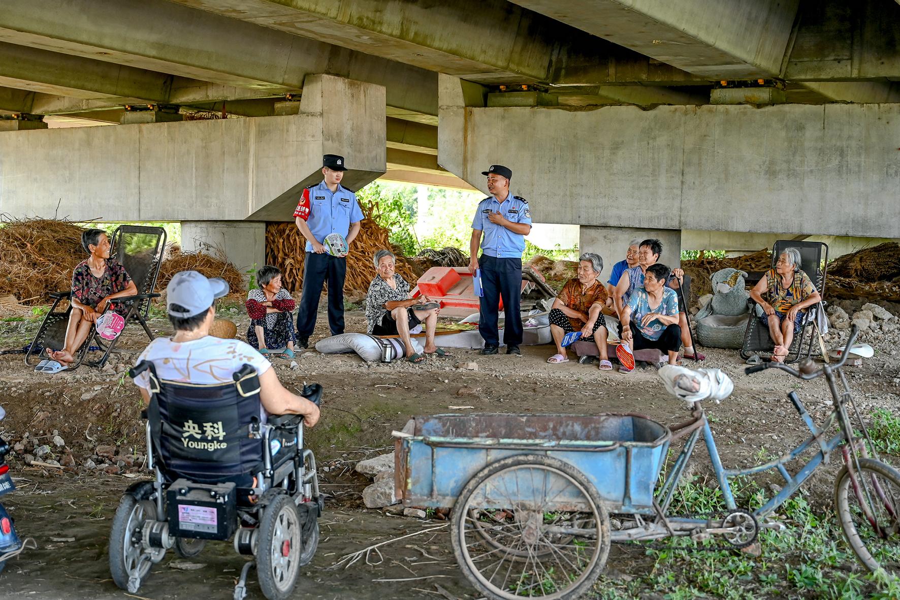 7月9日,安徽省馬鞍山市和縣公安局民警正在與納涼的村民講解預防網絡詐騙、未成年人防溺水等安全知識。連日來,和縣公安局開展“納涼話安全”活動,嚴防夏季安全事故發(fā)生。