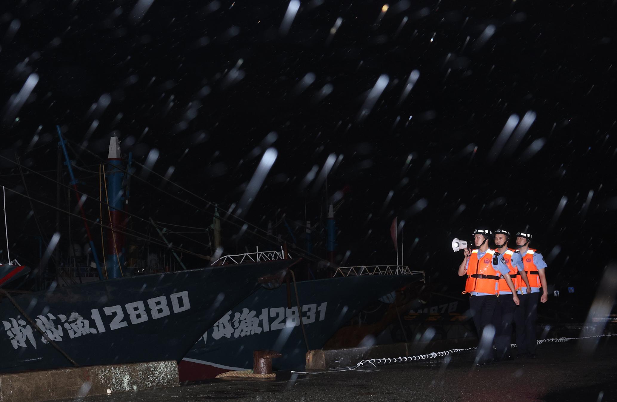 今年第8號(hào)臺(tái)風(fēng)“竹節(jié)草”逼近浙江沿海,7月29日,浙江省岱山縣公安局高亭派出所民警進(jìn)漁村、入碼頭、上漁船(排),通過高音喇叭、逐船檢查等形式排查安全隱患,進(jìn)一步筑牢防臺(tái)風(fēng)“警戒線”。