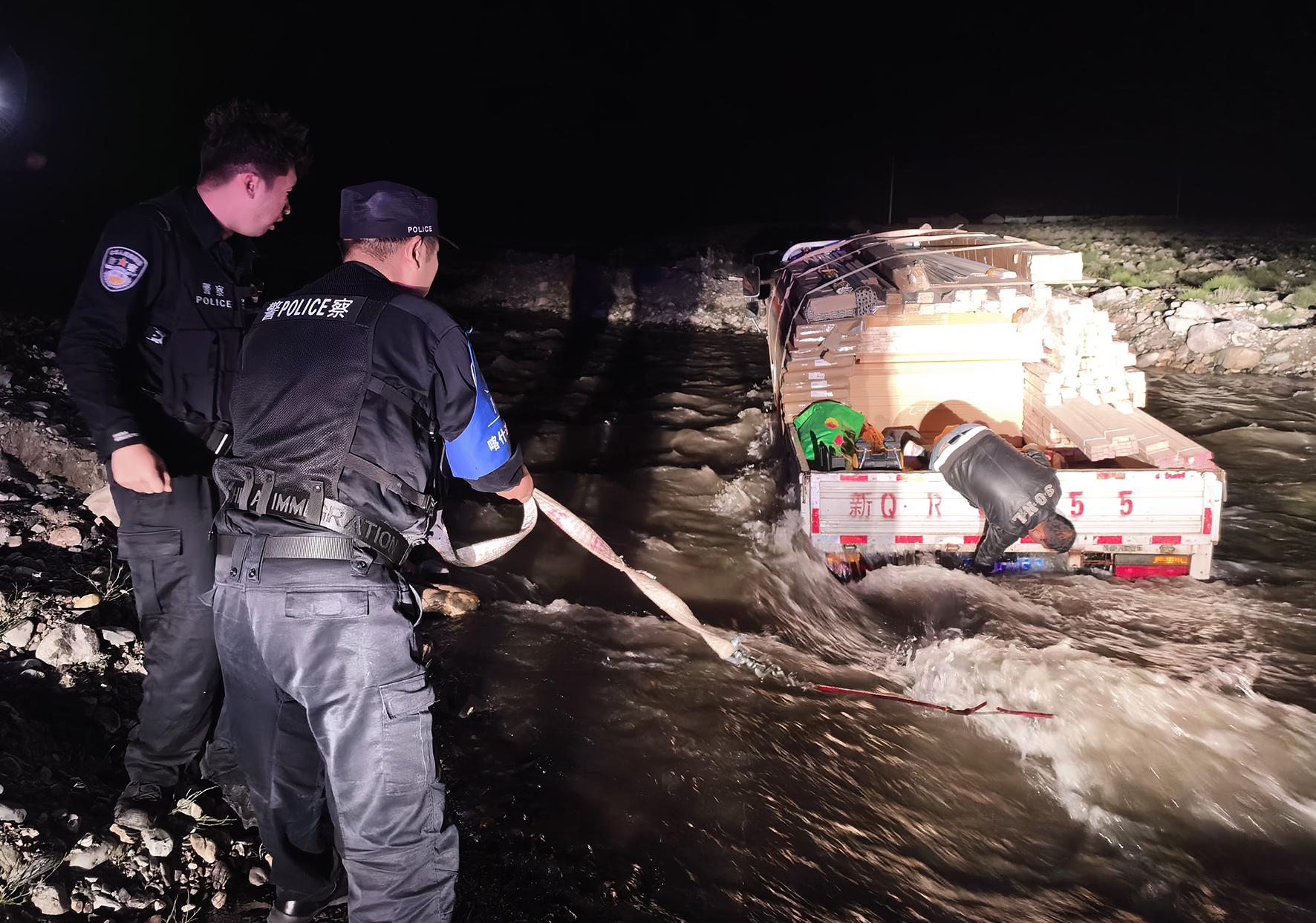 7月30日凌晨1時(shí)許,新疆喀什邊境管理支隊(duì)達(dá)布達(dá)爾邊境派出所接群眾報(bào)警求助稱:一輛滿載建筑物資的車輛被困河道中央。接警后,達(dá)布達(dá)爾邊境派出所迅速啟動(dòng)應(yīng)急預(yù)案,組織民警攜帶救援設(shè)備前往事發(fā)地點(diǎn)展開救援。歷時(shí)約2小時(shí),將被困車輛轉(zhuǎn)移至安全區(qū)域。