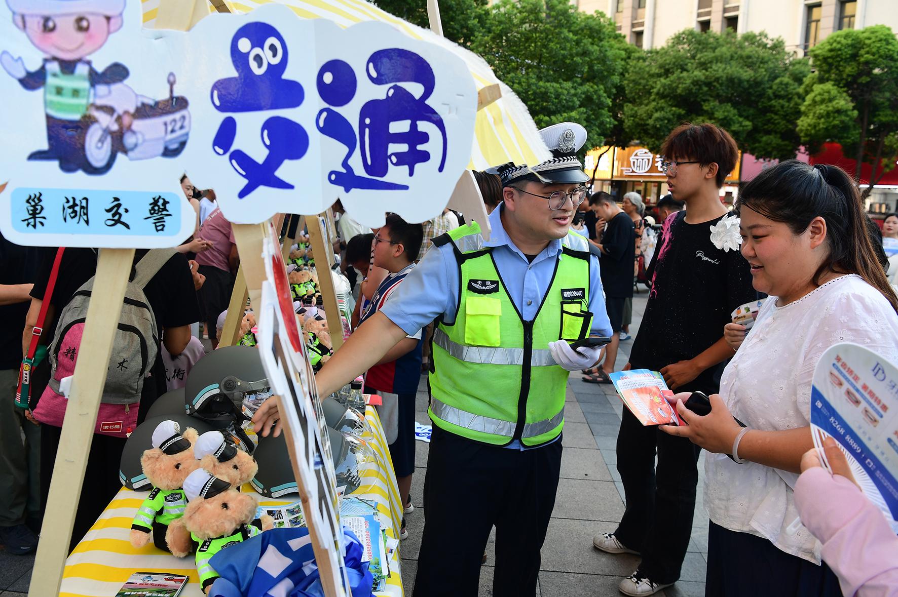 8月3日,安徽省巢湖市公安局交警大隊在商場門前開展現(xiàn)場送安全大禮活動,旨在倡導(dǎo)合法合規(guī)出行,共筑電動車騎行安全防線。