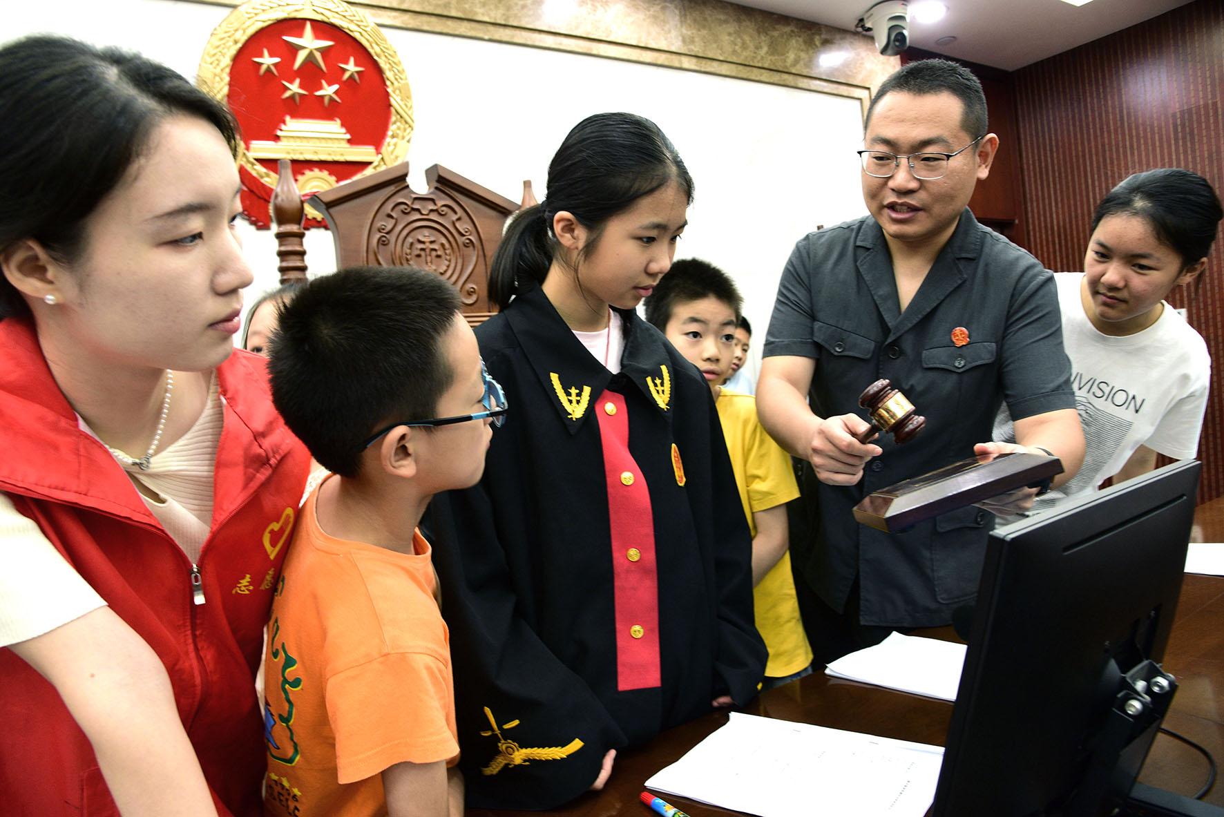 8月7日,江蘇省鎮(zhèn)江市七里甸司法所聯(lián)合江蘇大學(xué)法律援助中心志愿者組織中小學(xué)生走進(jìn)潤州區(qū)人民法院金山湖法庭,開展“今天我是小法官——模擬法庭學(xué)法”活動(dòng)。