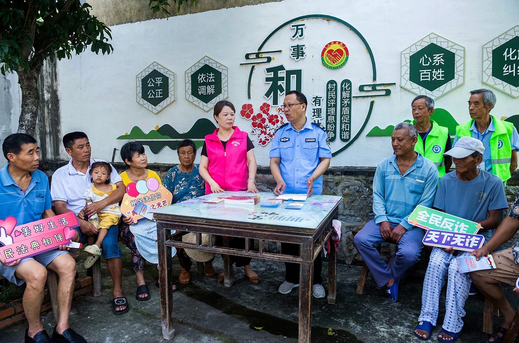 8月7日,安徽省含山縣司法局仙蹤鎮(zhèn)司法所法律顧問(wèn)在五里村百姓評(píng)理說(shuō)事點(diǎn)開展法律宣傳活動(dòng)。